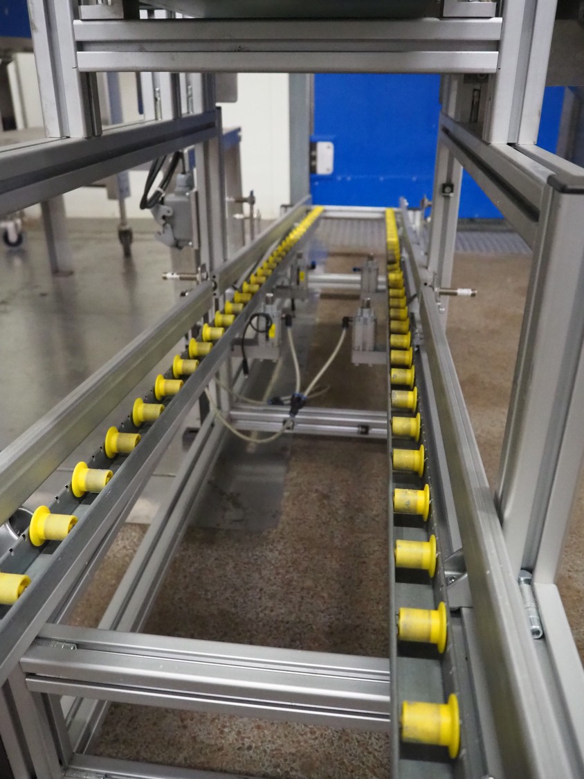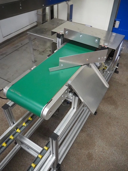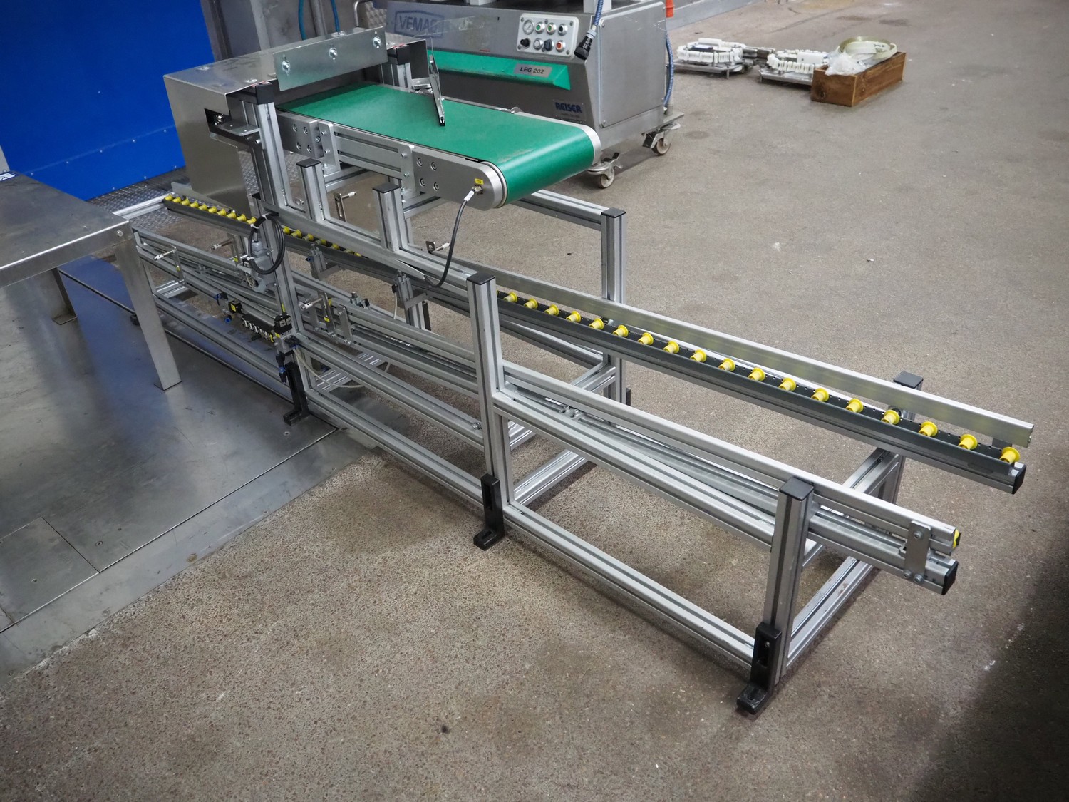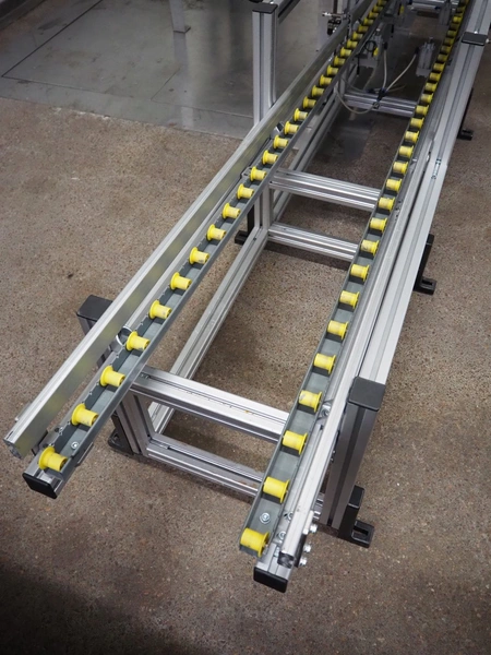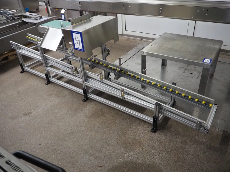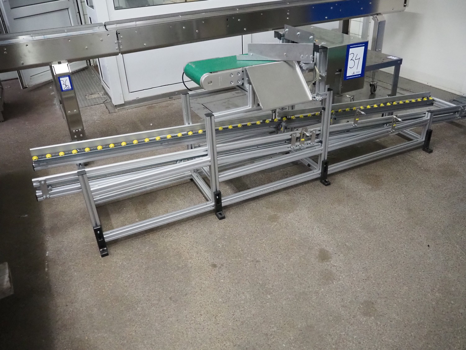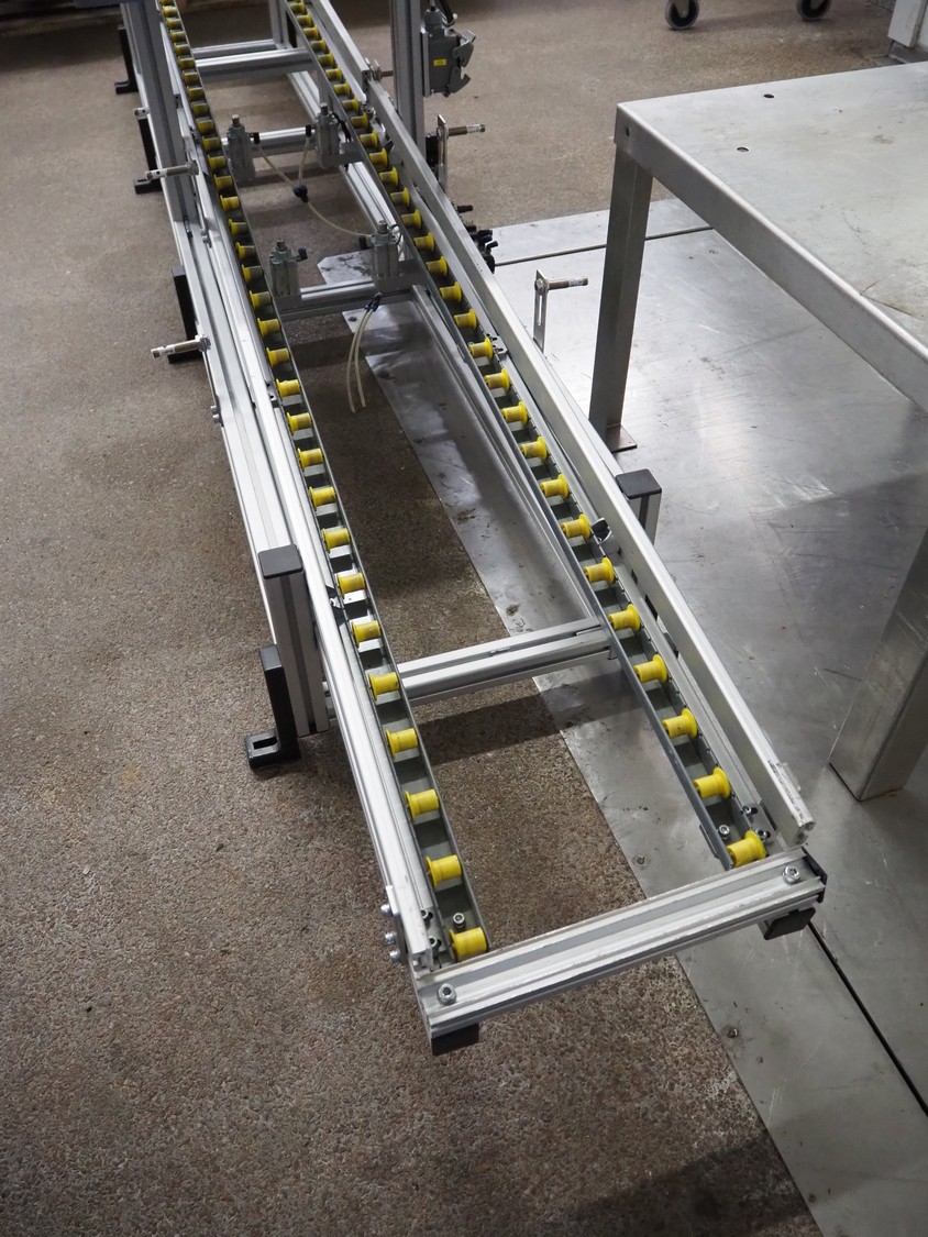 Roller conveyor, plastic belt, belt width: 240 mm, clearance: 300 mm x 50 mm, roller width: 280 mm, total dimensions: 3000 mm x 620 mm x 960 mm.
