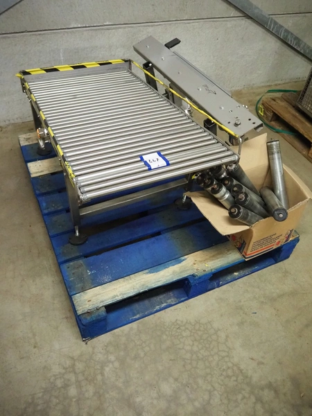 Roller conveyor with s/s frame and rollers, roller width: 500 mm, total dimensions: 1000 mm x 600 mm x 500 mm.