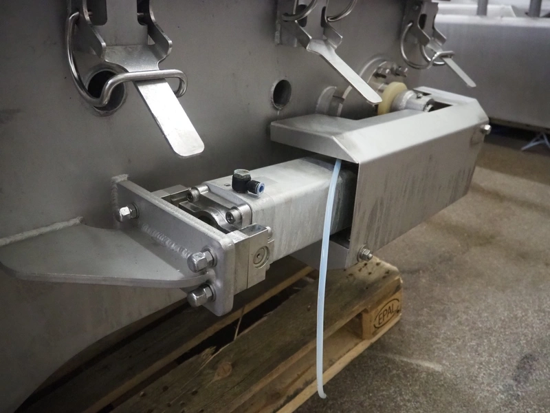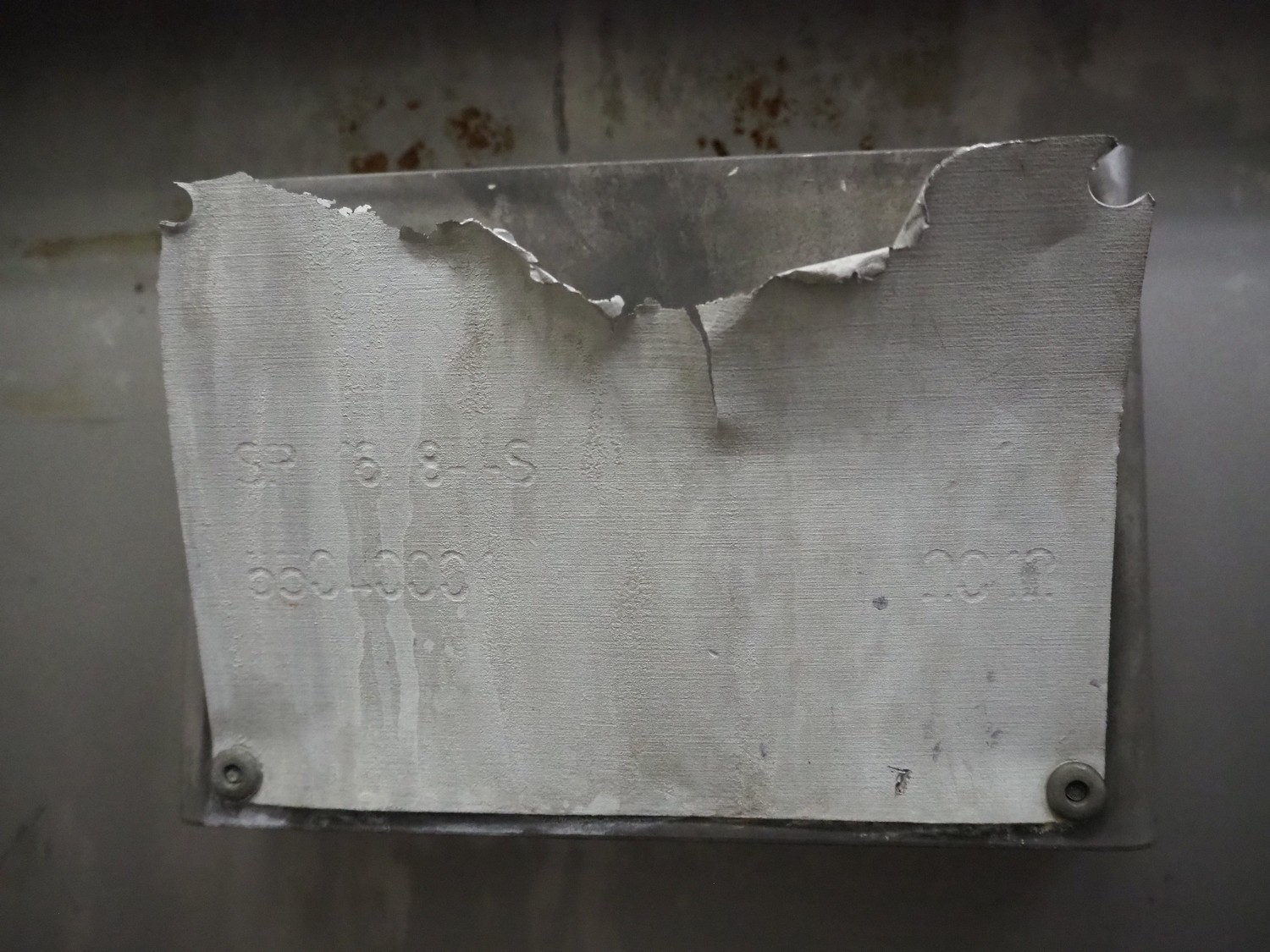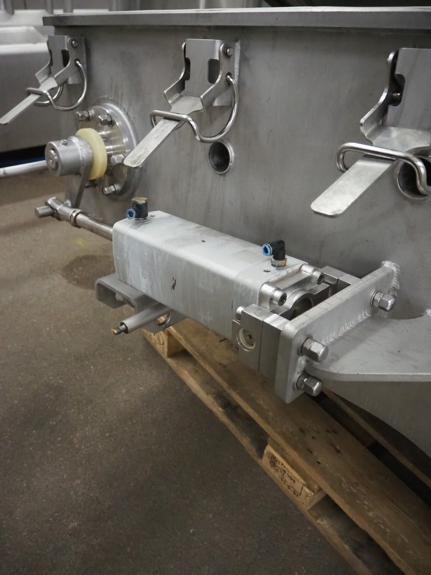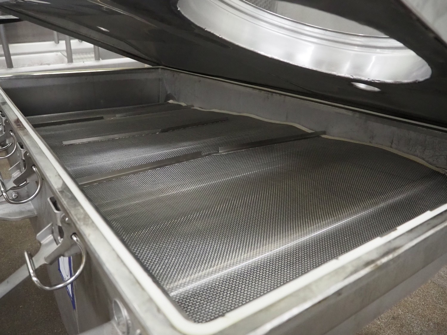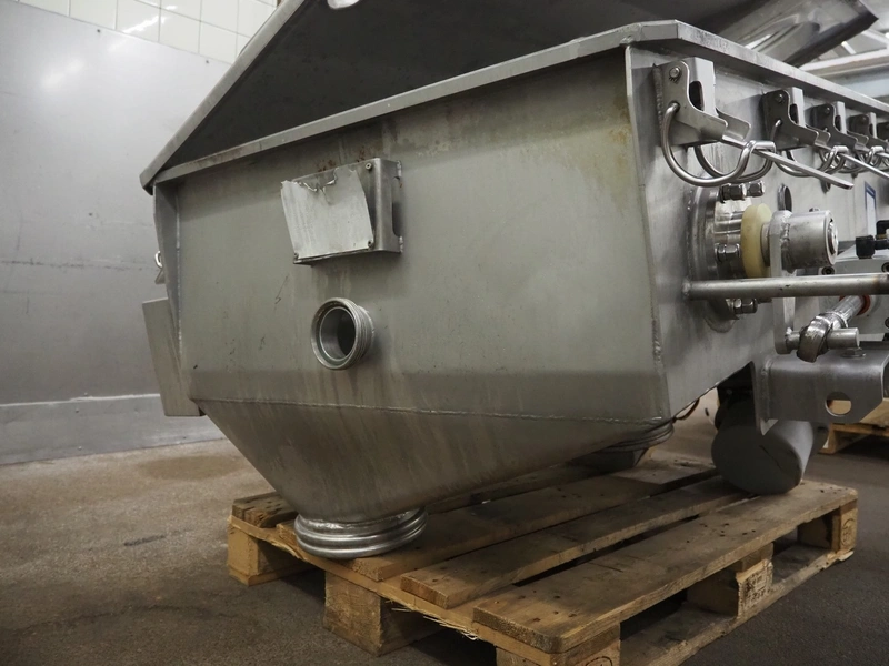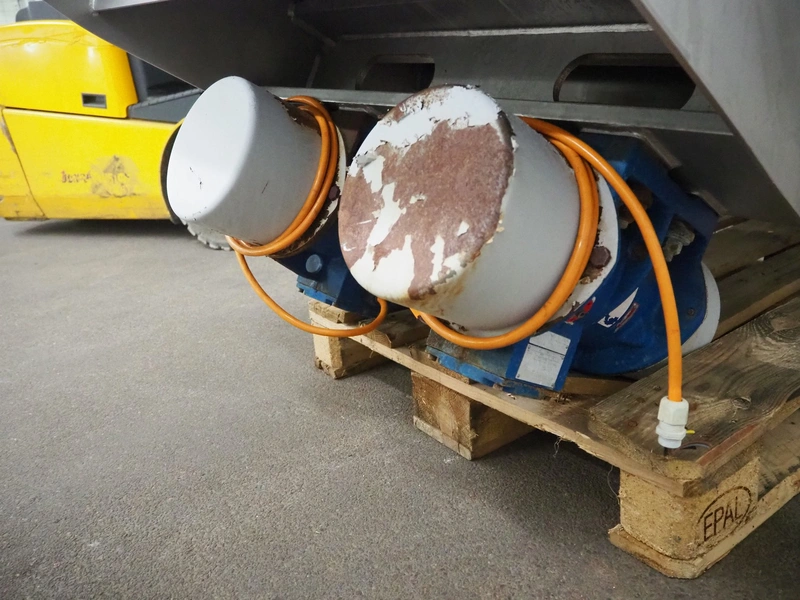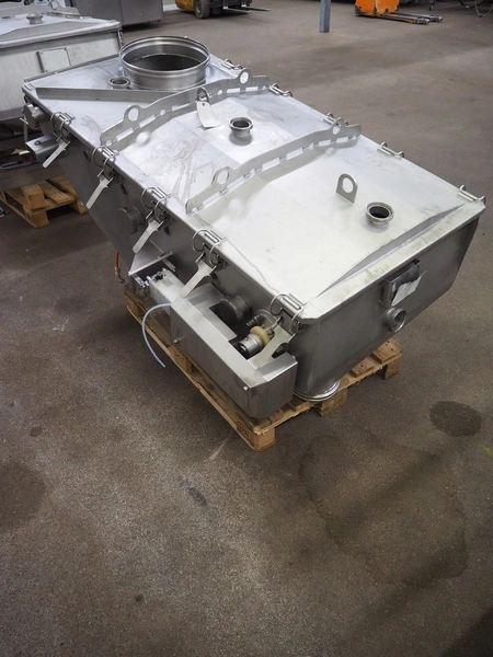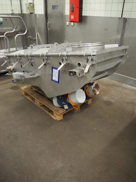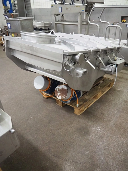 S/s vibrating gutter with sieve, type: SP 16.8-S, number: 550 0001, year of construction: 2012, total dimensions: 1900 mm x 1300 mm x 1000 mm.