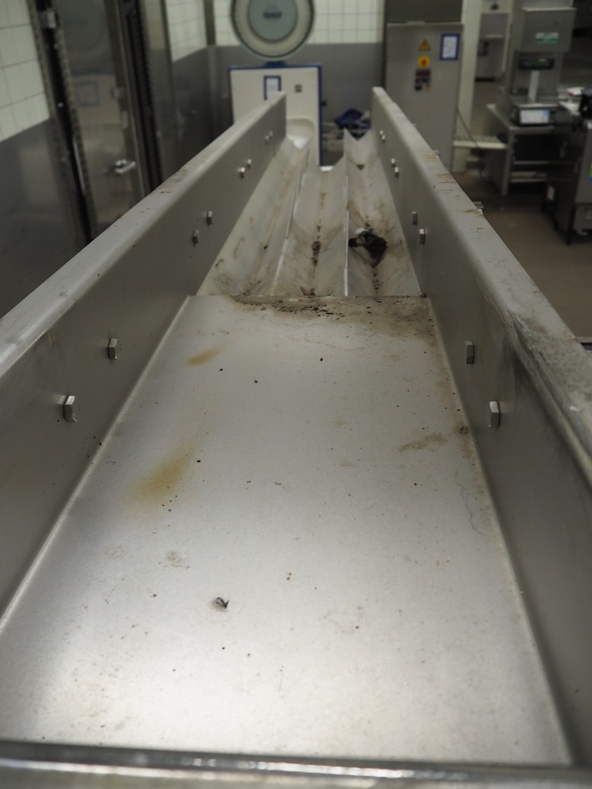 Key Technology BV vibrating gutter, type: MVIID, number: 176406 2, year of construction: 2007, gutter width: (3x) 100 mm, total dimensions: 2550 mm x 620 mm x 1800 mm.