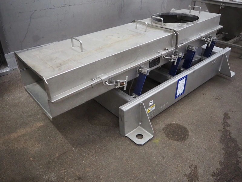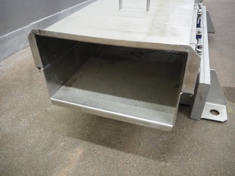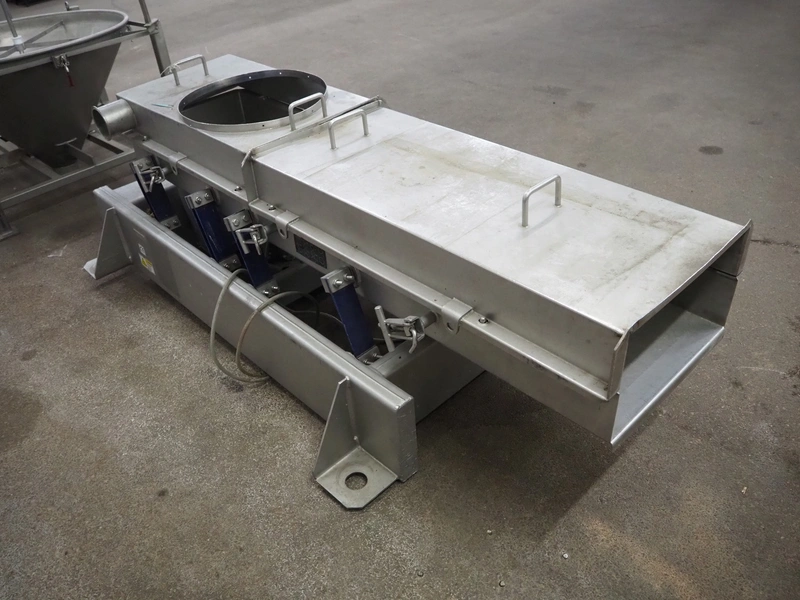 Key Technology Inc. vibrating gutter, model: 427281-1, serial number: 99-46401, dimensions: 2080 mm x 1000 mm x 700 mm.