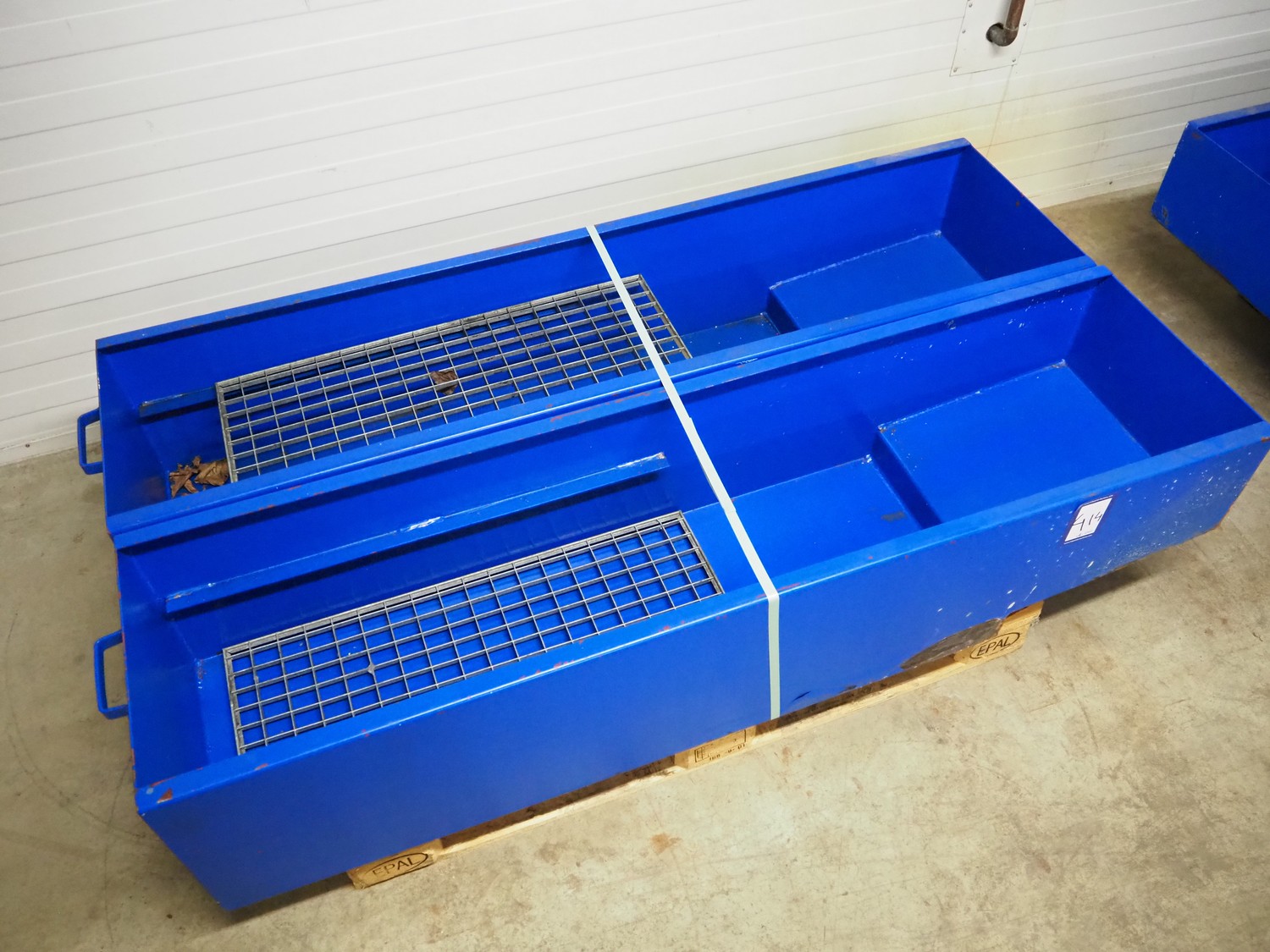 2 Denios AG drip trays, type: FK 20, serial number: 110011991-000100-001, year of construction: 2002, dimensions: (2x) 1650 mm x 430 mm x 350 mm.