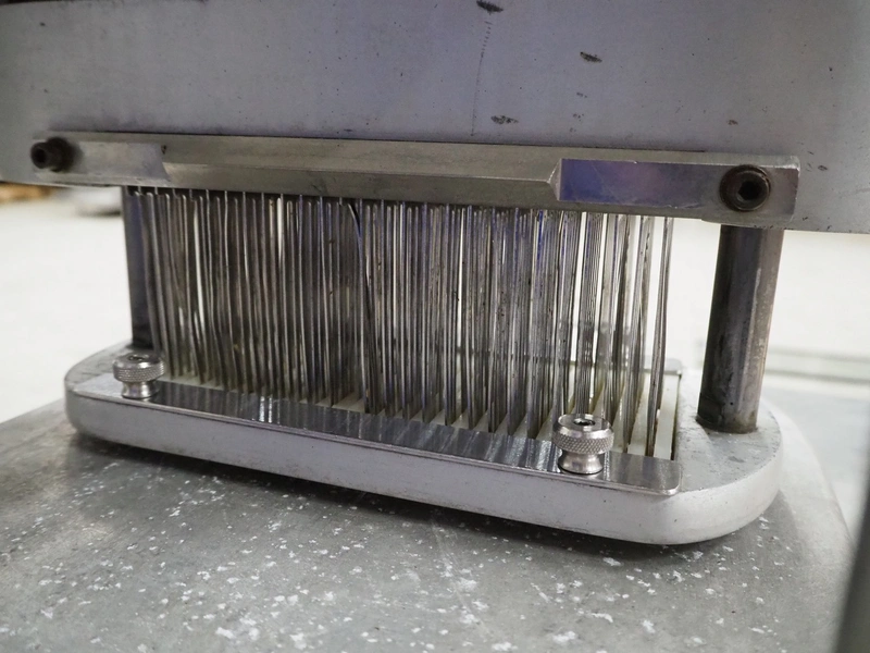 Ideal tenderizer, working width: 190 mm, working length: 80 mm, total dimensions: 610 mm x 510 mm x 1820 mm.