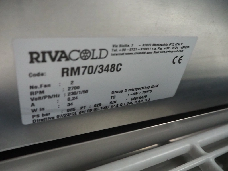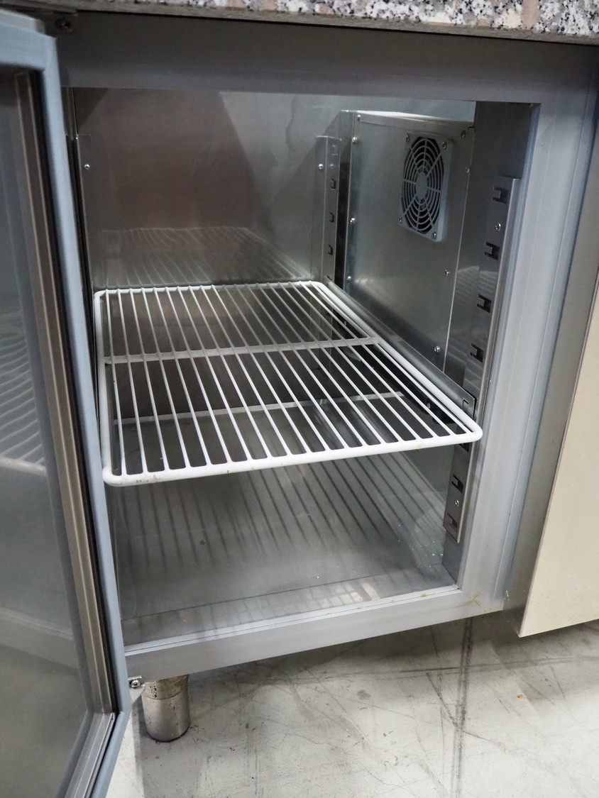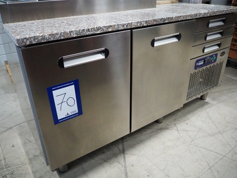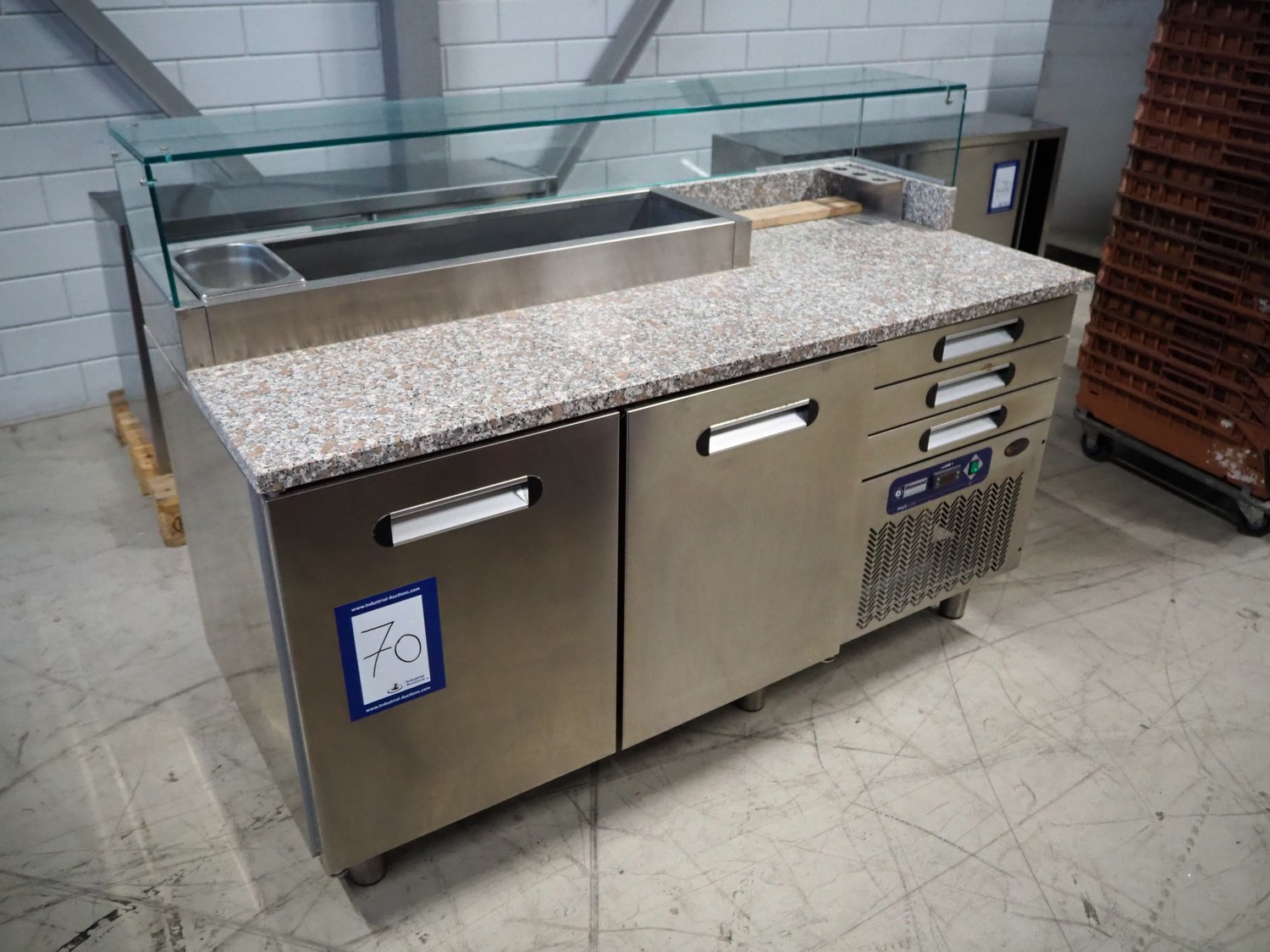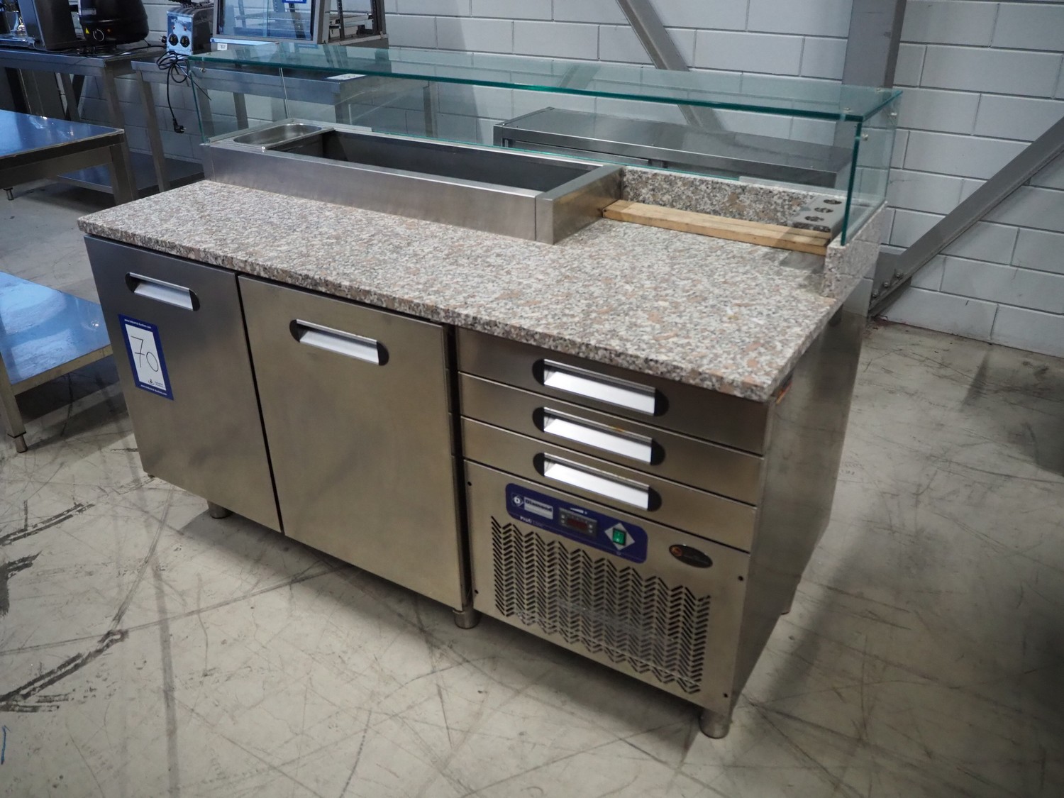 Studio-54 refrigerated counter, model: T 1600 P,P,M+3C MR-PIZZA/S, number: 05099167, 230 V, 50 Hz, 1.93 A, refrigerant: R404A / 0.200 kg, dimensions: 1600 mm x 700 mm x 1170 mm.