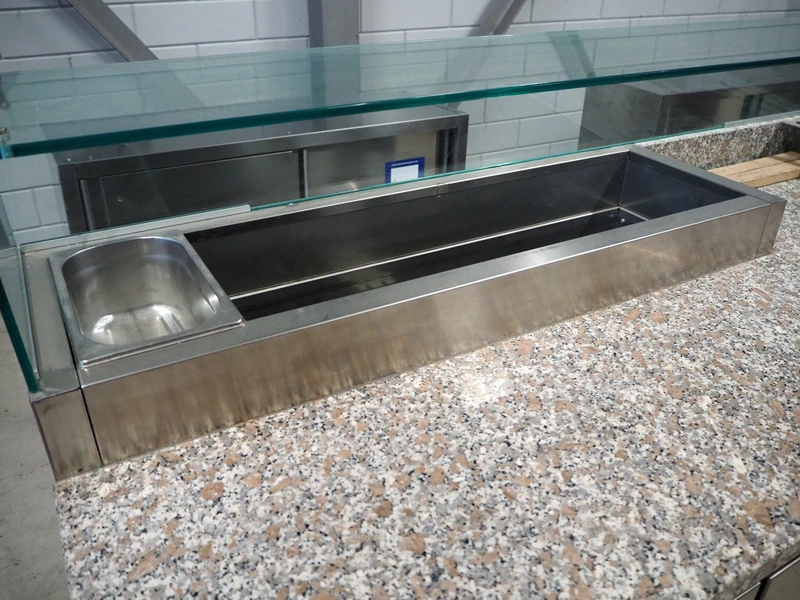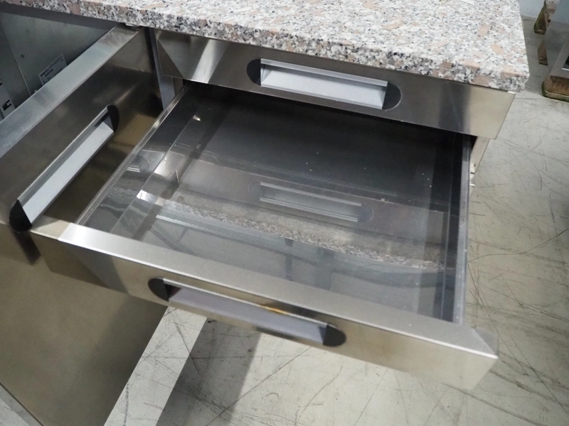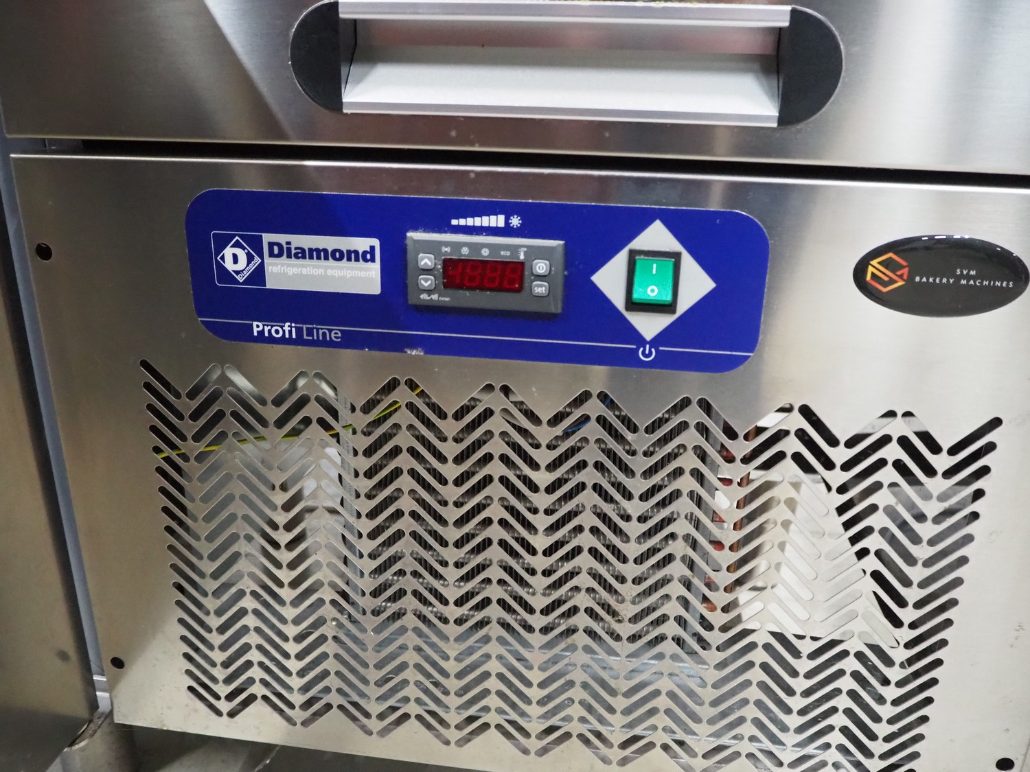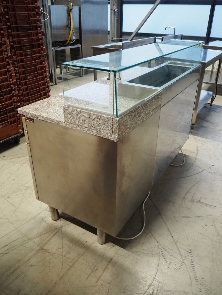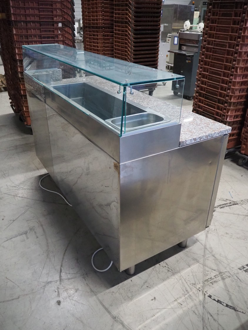 Studio-54 refrigerated counter, model: T 1600 P,P,M+3C MR-PIZZA/S, number: 05099167, 230 V, 50 Hz, 1.93 A, refrigerant: R404A / 0.200 kg, dimensions: 1600 mm x 700 mm x 1170 mm.