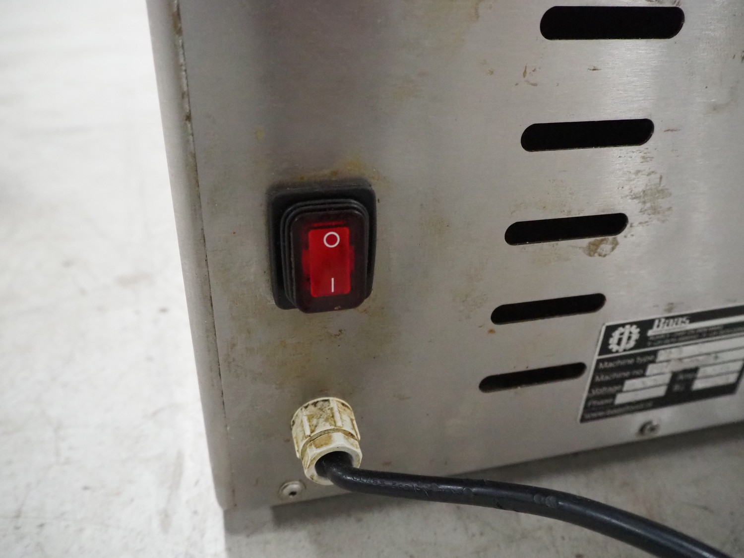 Baas Food Equipment small bread moulder, type: BM-2, year of construction: 2021, 230 V, 1 Ph, 1.54 A, clearance: 150 mm x 60 mm, cloth belt, belt width: 240 mm, total dimensions: 480 mm x 350 mm x 360 mm.