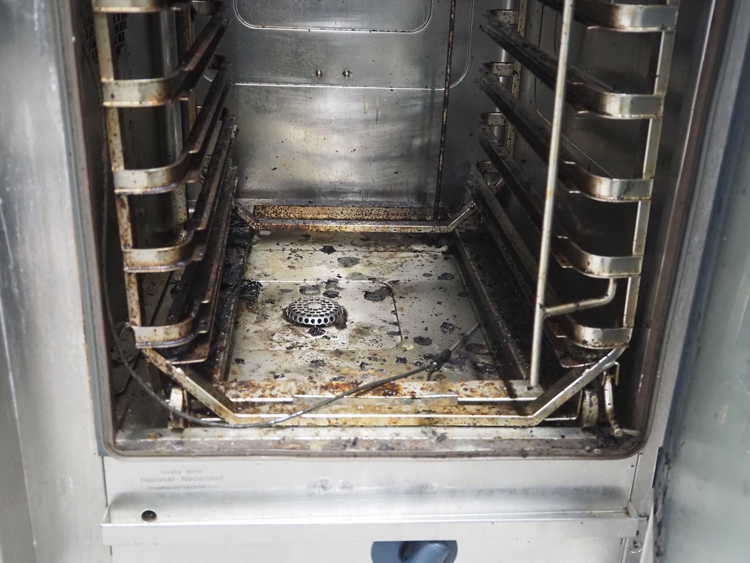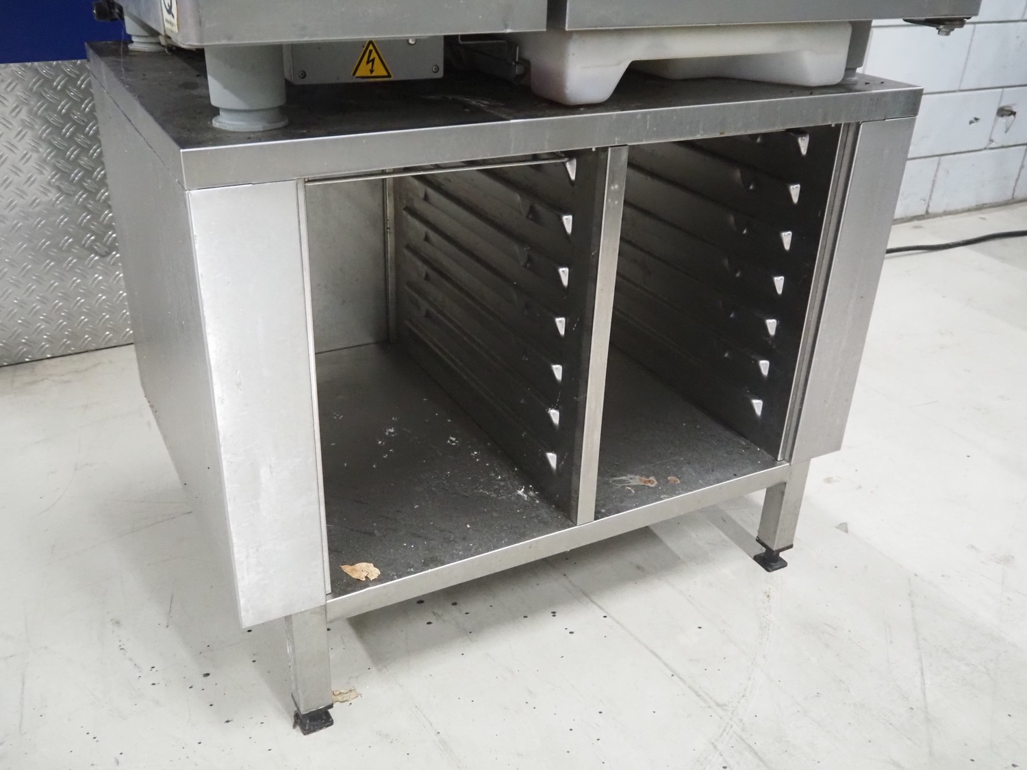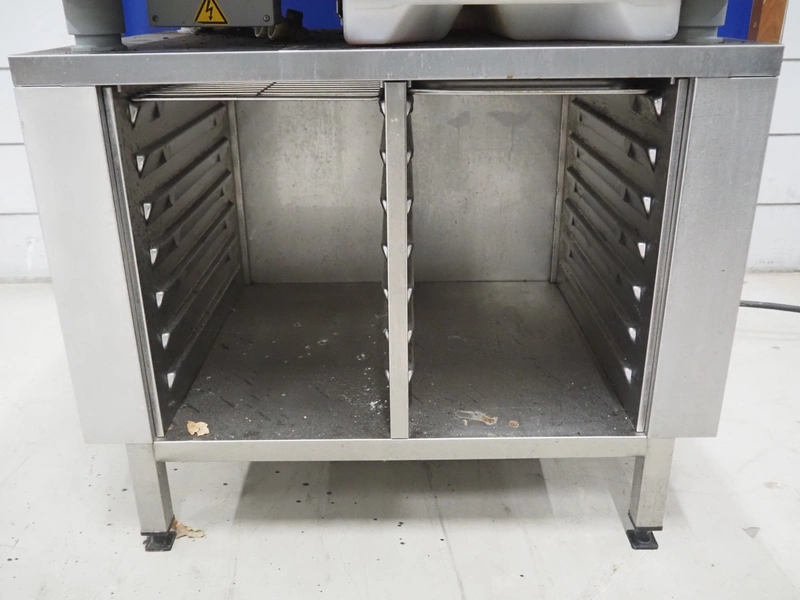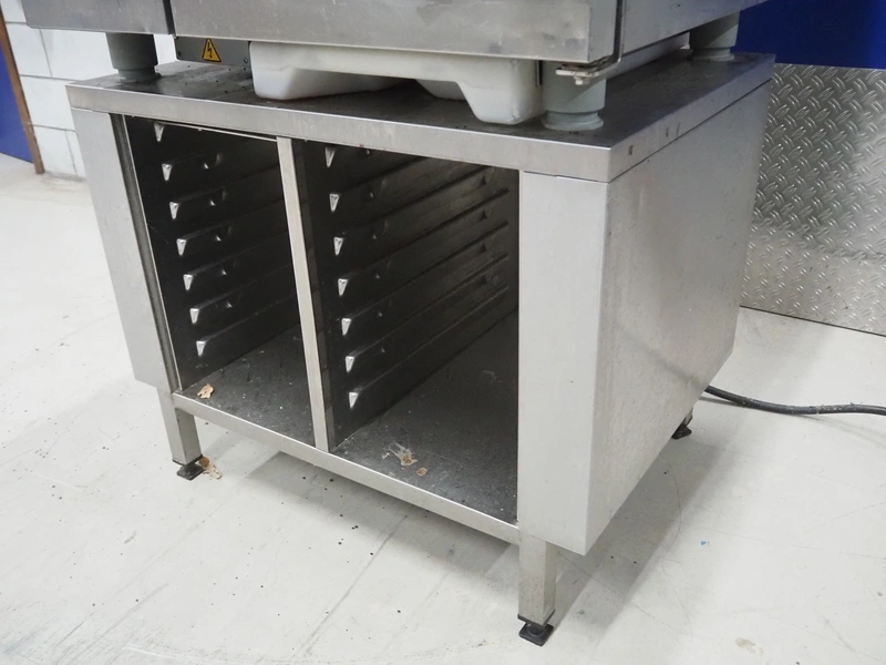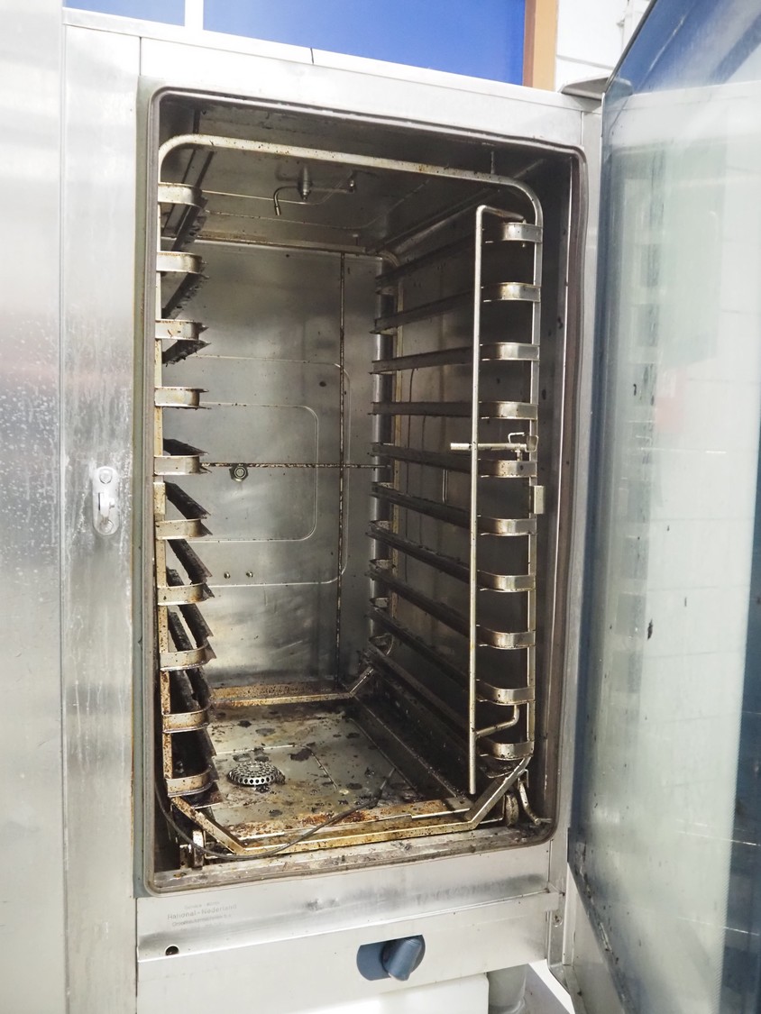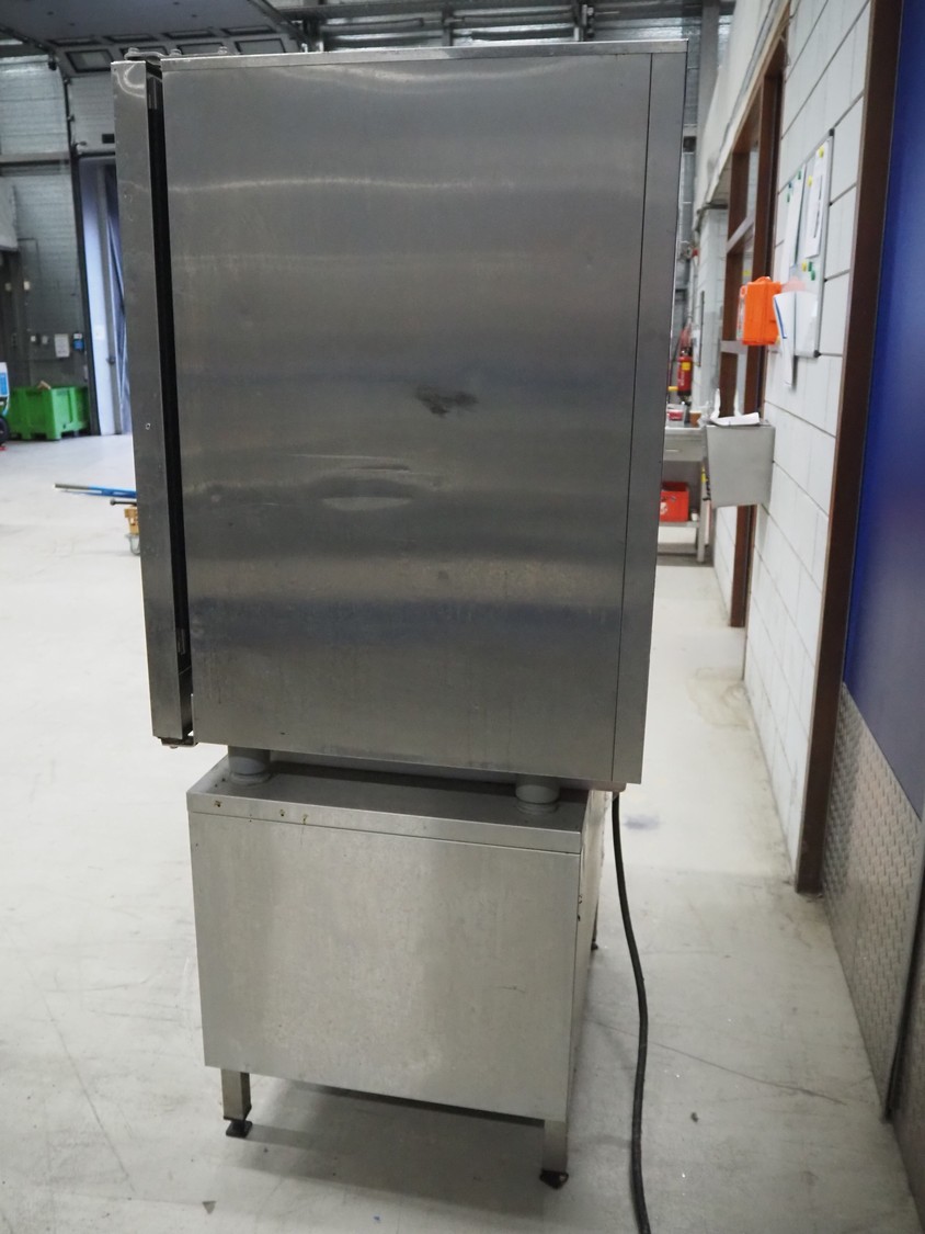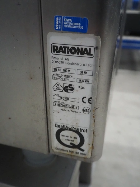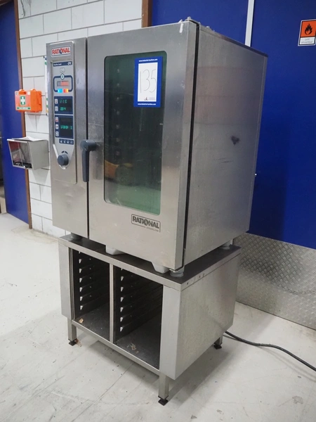 Rational combisteamer with s/s cabinet, type: CPC 101, serial number: E11CC00031024112, 400 V, 3 Ph, 50 Hz, 18.6 kW, 10 floors, dimensions each floor: 330 mm x 480 mm, dimensions combisteamer: 900 mm x 820 mm x 1100 mm, total dimensions: 900 mm x 820 mm x 1840 mm.