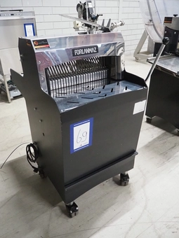 FB mobile bread slicer, 30 knives, distance between knives: 12.5 mm, total dimensions: 700 mm x 580 mm x 1460 mm.0 bidsLot is closed -