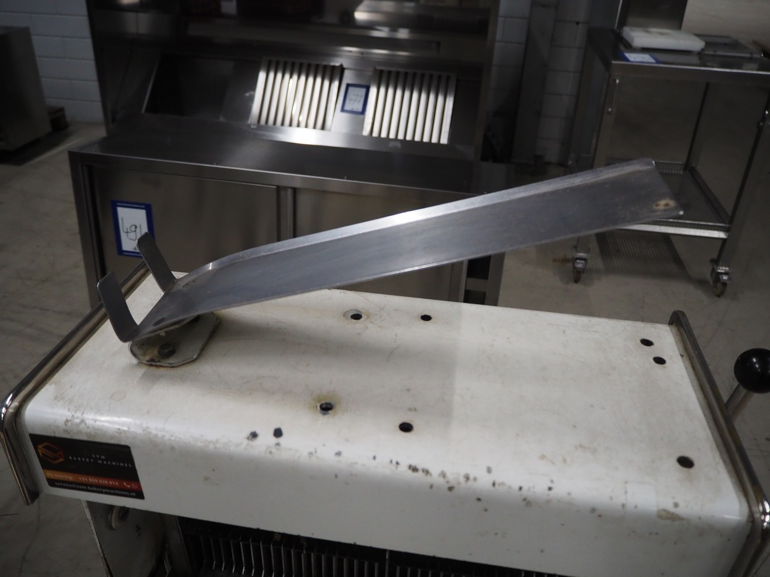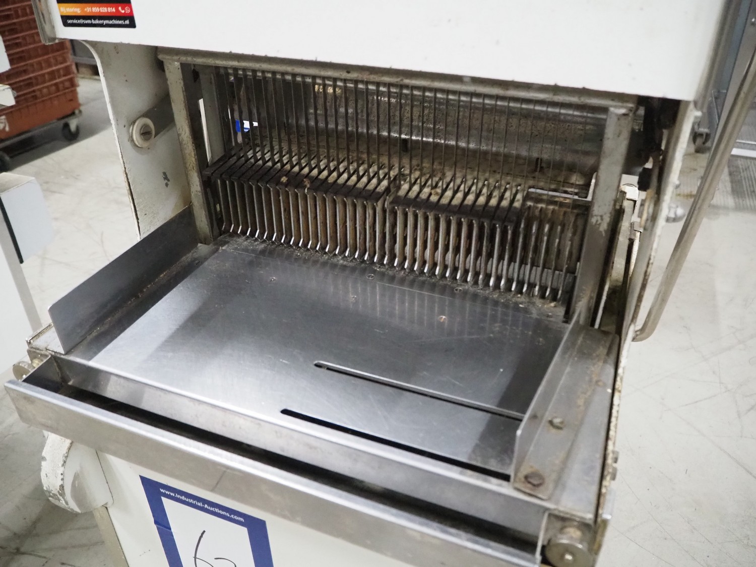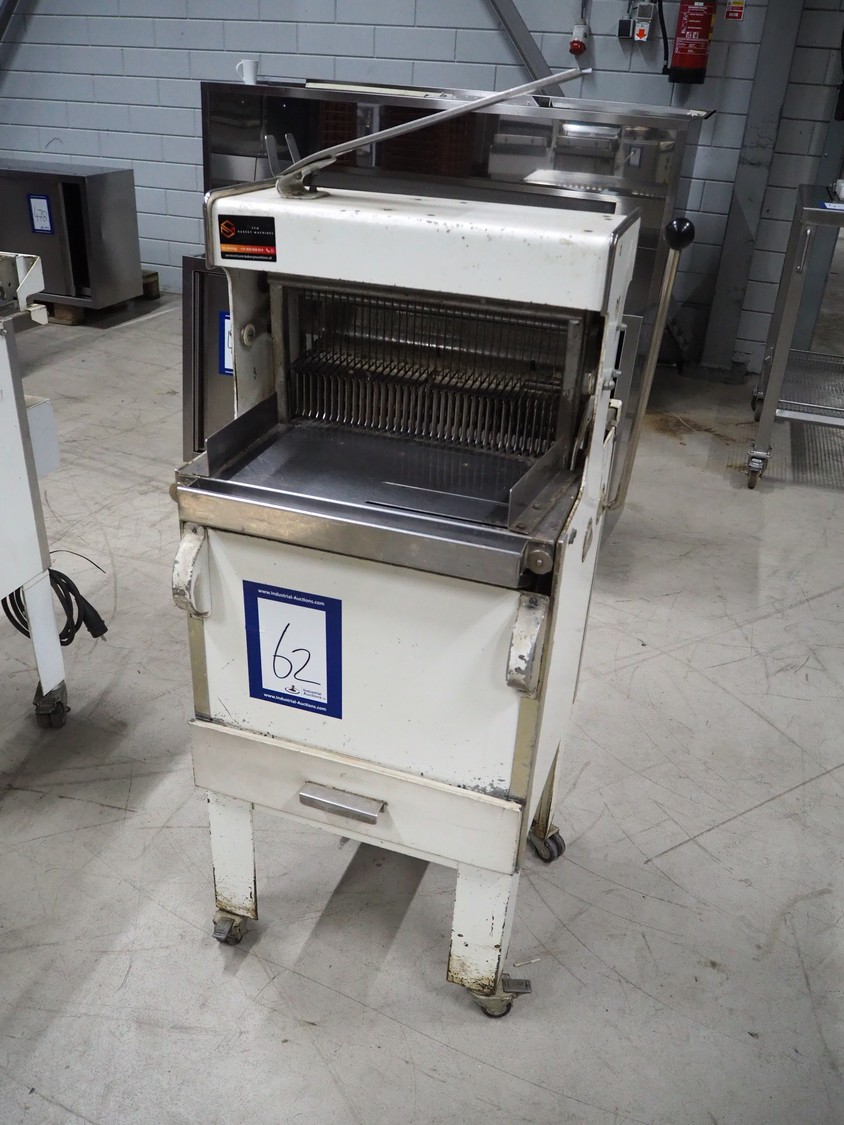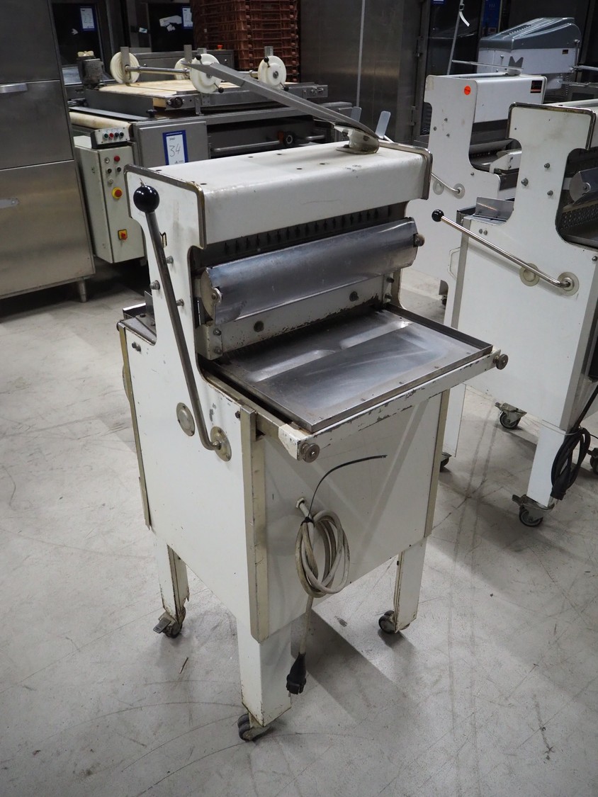 Bread slicer, 34 knives, distance between knives: 12 mm, total dimensions: 550 mm x 660 mm x 1390 mm.