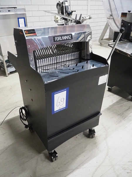 Porlanmaz bread slicer, 26 knives, distance between knives: 19 mm, total dimensions: 880 mm x 750 mm x 1250 mm.