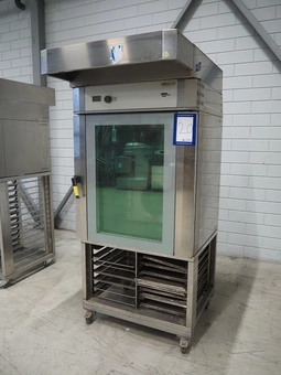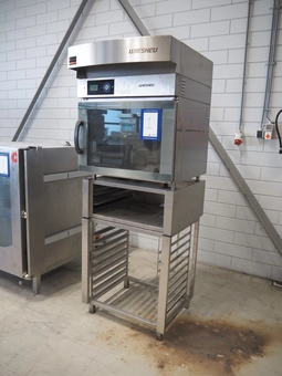 Wiesheu GmbH oven on s/s rack with hood, model: Minimat 64-L-Backofen, serial number: 12006471, year of construction: 04-2017, 400 …
