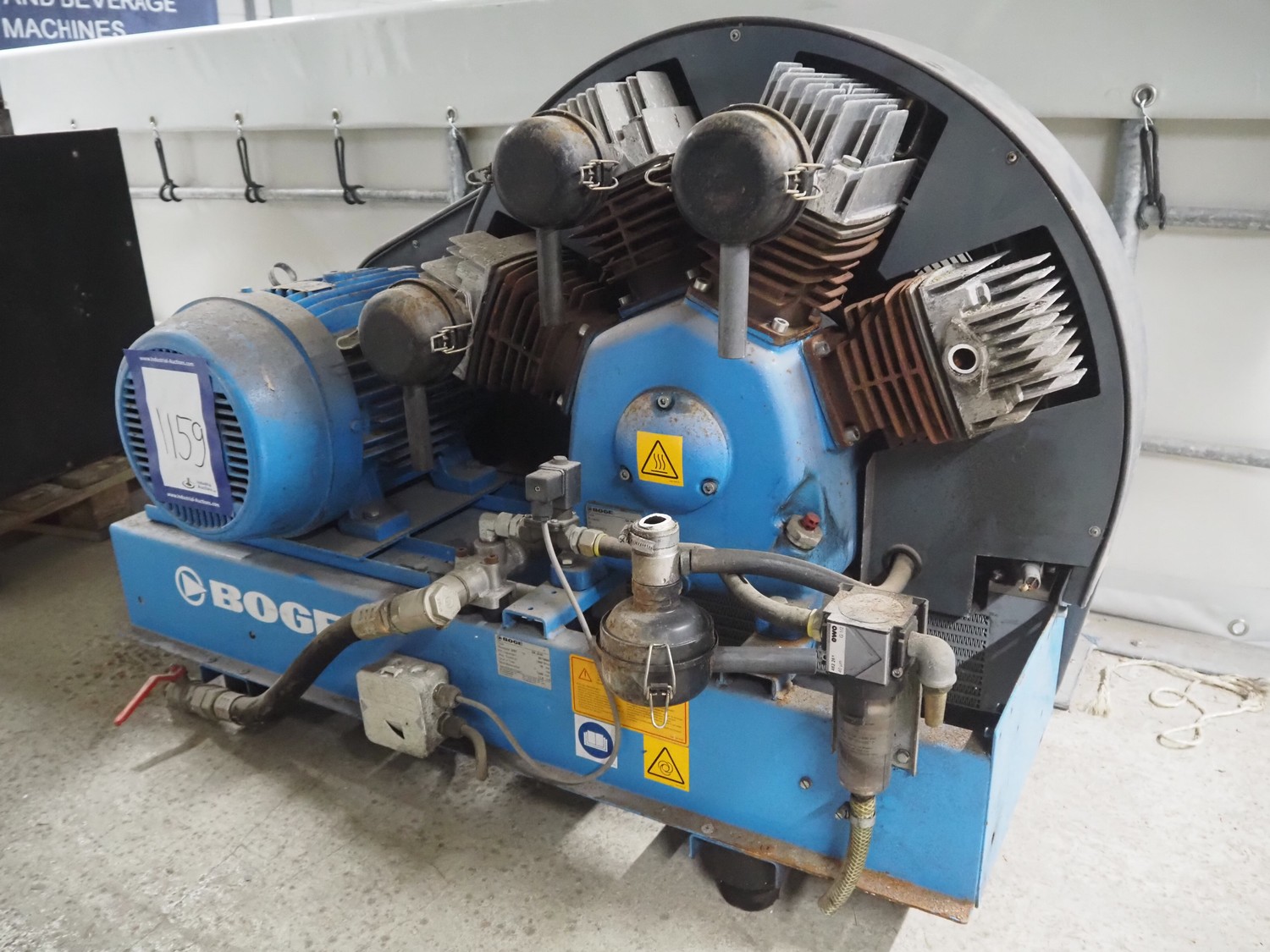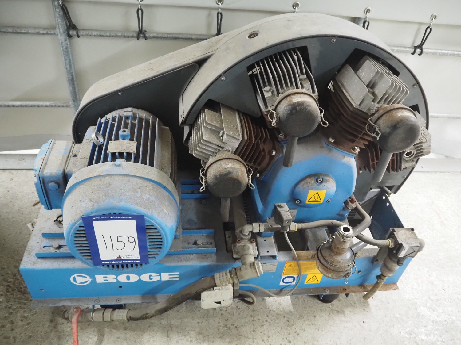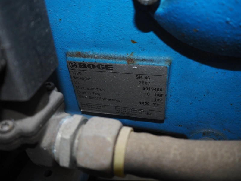 Boge air compressor, type: SK 46, number: 5019460, year of construction: 2007, 11 kW, maximum pressure: 10 bar, dimensions: 1370 mm x 700 mm x 900 mm.