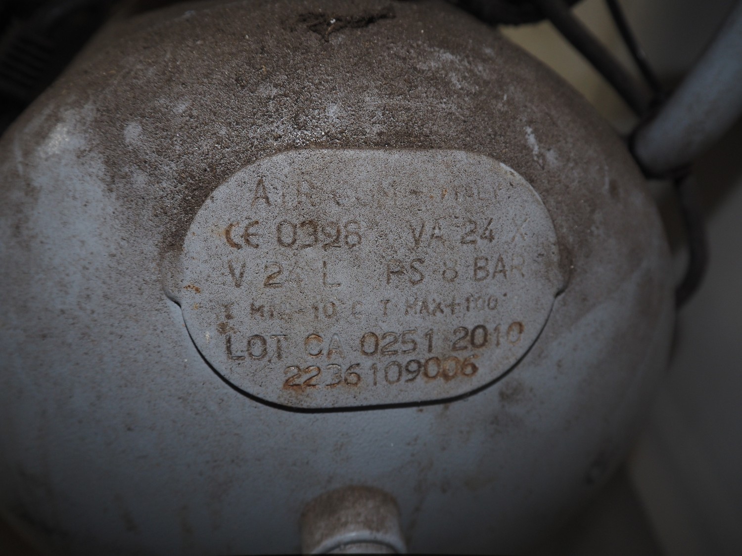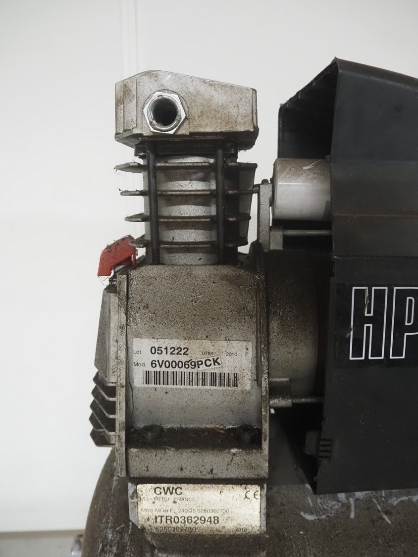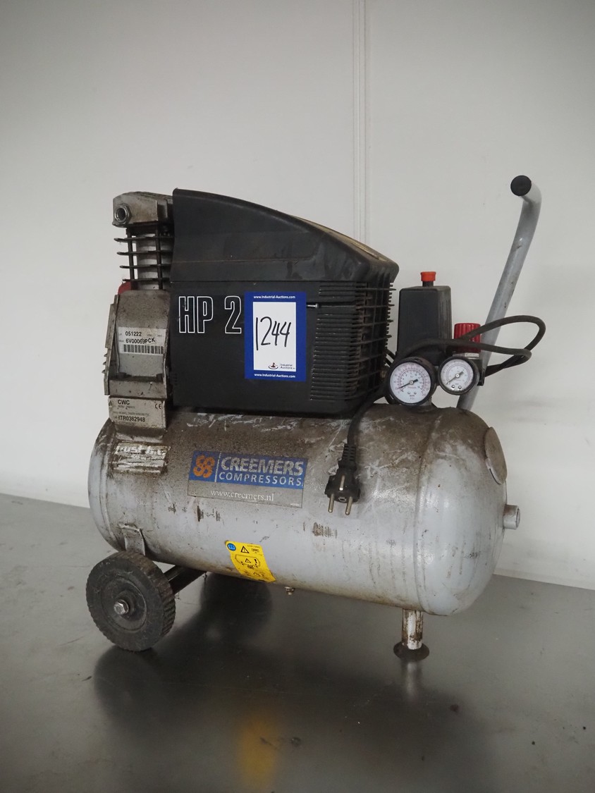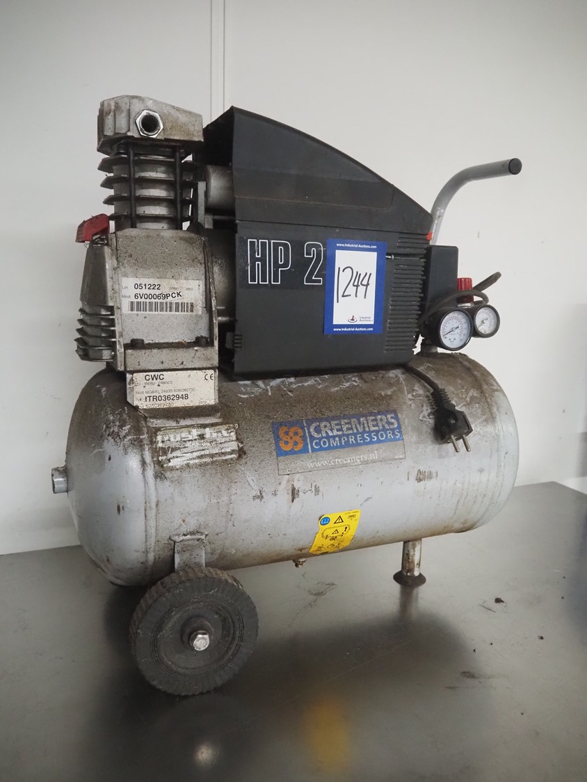 Creemers Compressors compressor, type: MOBIEL 240/25, serial number: ITR0362948, year of construction: 2010, 230 V, 8 bar, volume: 24 liter, dimensions: 600 mm x 300 mm x 580 mm.