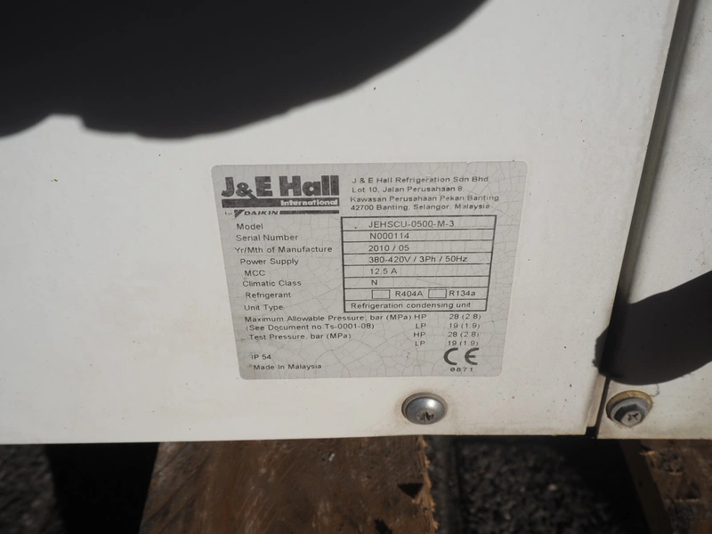 J&E; Hall outside unit for airco, model: JEHSCU-0500-M-3, serial number: N000114, year of construction: 2010/05, 380-420 V, 3 Ph, 50 Hz, 12.5 A, dimensions: 1300 mm x 600 mm x 1000 mm.