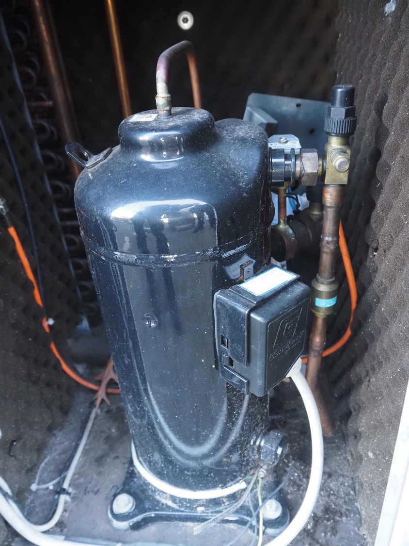 Outside airco unit, dimensions: 1100 mm x 1200 mm x 1250 mm.