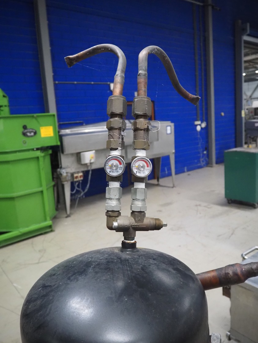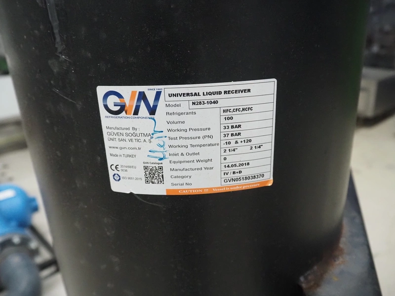 GVN steel pressure vessel, model: N283-1040, serial number: GVN0518038370, year of construction: 14.05.2018, volume: 100 liter, dimensions: 510 mm x 600 mm x 1860 mm.