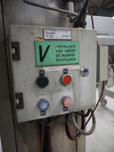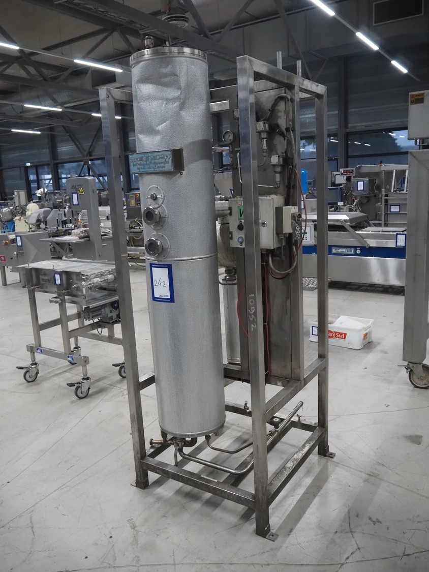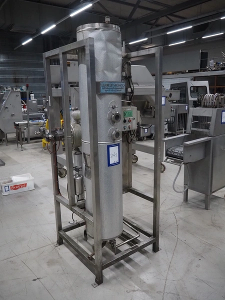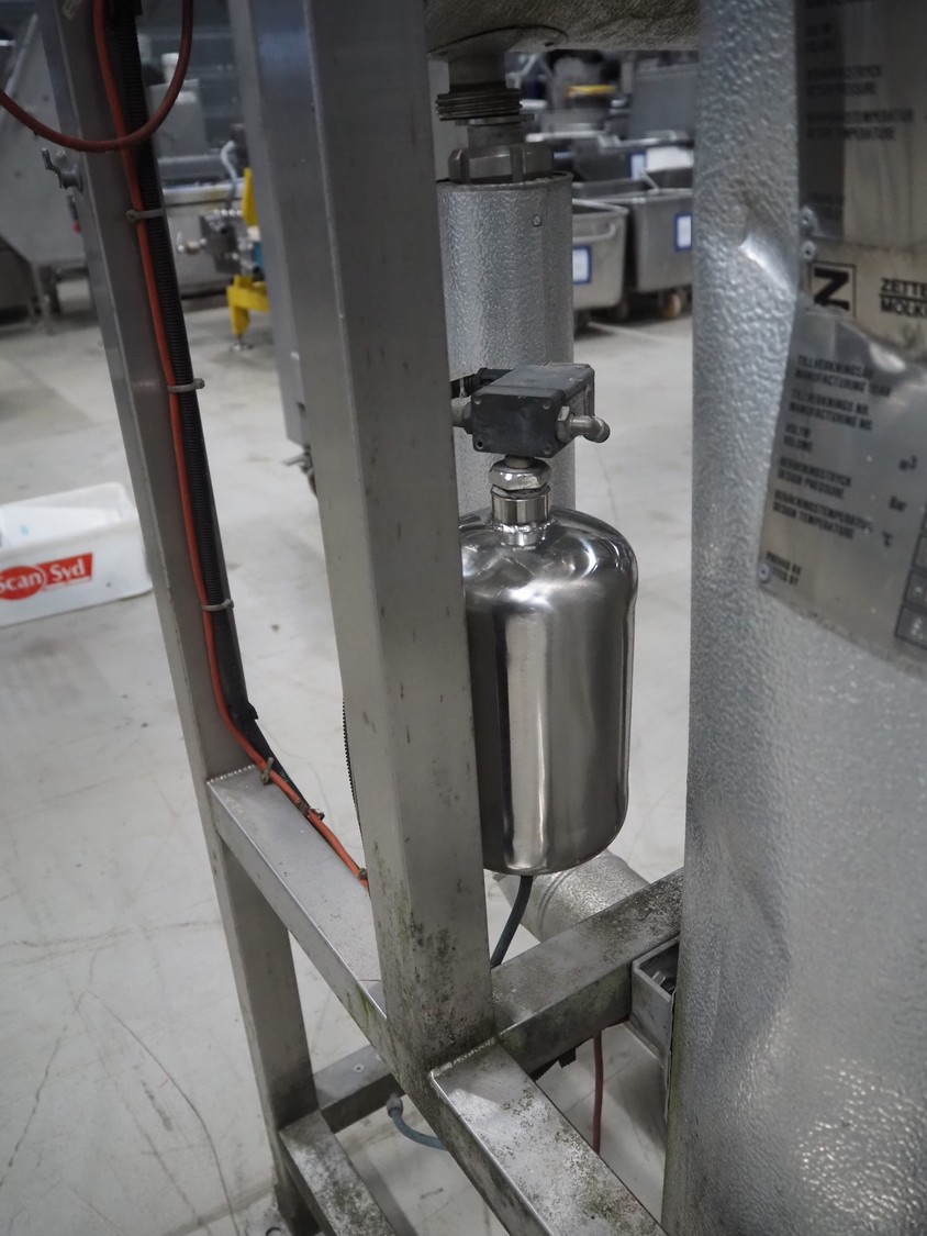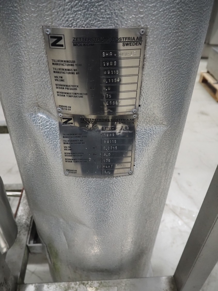 Zetterströms Rostfria AB vessel with plate heat exchanger, model: SHG · 300 · LR, serial number: 89115, year of construction: 1989, volume: 300 liter, max pressure: 8 bar, max temperature: 175 C°, dimensions: 870 mm x 950 mm x 2380 mm.