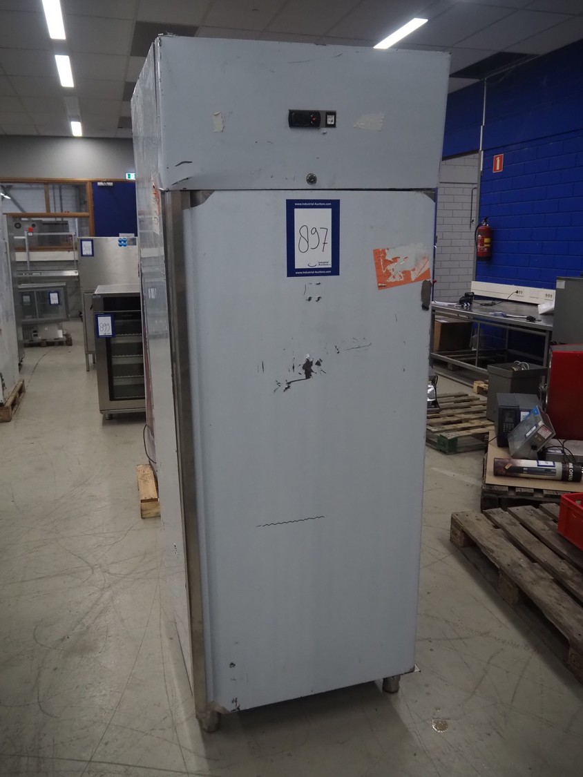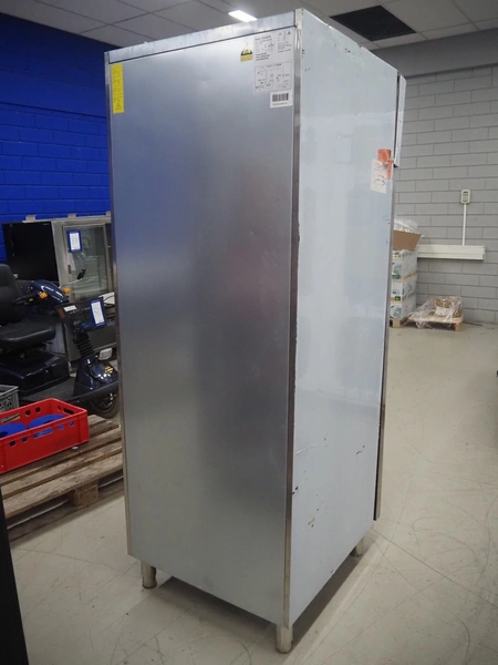 Gastro Hero GmbH refrigerator, model: GNH650TN, serial number: SK2220GH44AG650T243, year of construction: 2020, 220/240 V, 50 Hz, 1.9 A, refrigerant: R290, 120 gram, 5 floors, floor dimensions: 620 mm x 520 mm, total dimensions: 720 mm x 775 mm x 1850 mm. Door is broken.