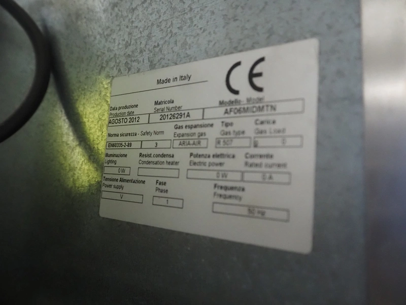Asskühl refrigerator, model: AF06MIDMTN, serial number: 20126291A, year of construction: 2012, 1 Ph, 50 Hz, refrigerant: R 507, inside dimensions: 590 mmx 580 mm x 1500 mm, total dimensions: 720 mm x 720 mm x 1030 mm.