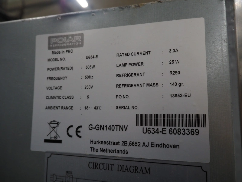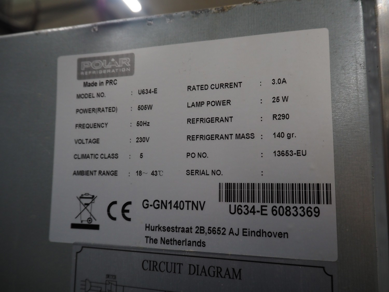 Polar mobile refrigerator, model: U634-E, serial number: 6083369, 230 V, 50 Hz, 3.0 A, 25 W, refrigerant: R290 / 140 gram, dimensions: 1480 mm x 830 mm x 2000 mm.