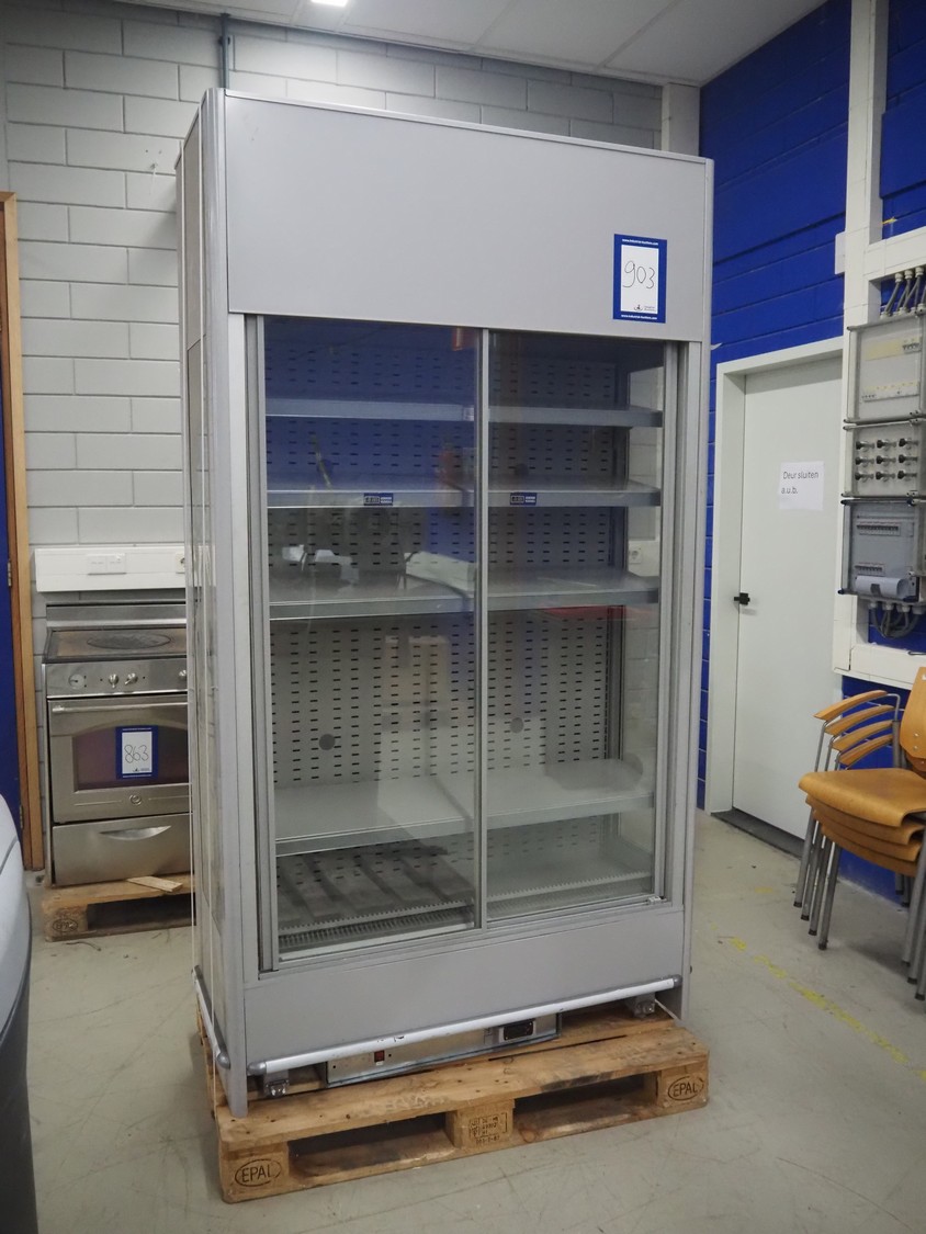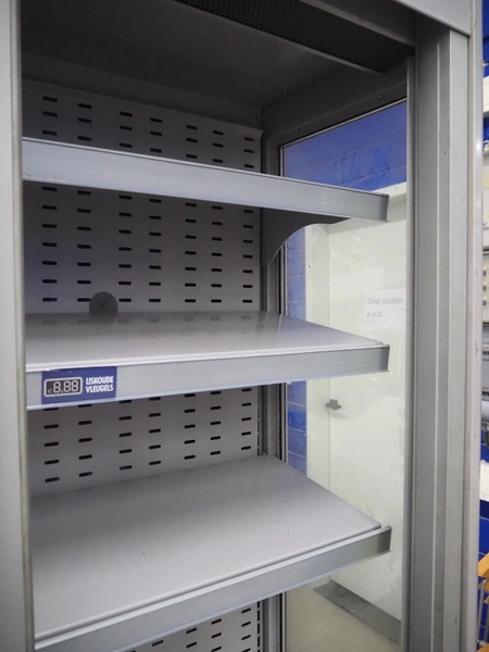 Kaplanlar refrigerated showcase, model: Granizado - DL, serial number: 26350002200330, year of construction: 02/2020, 230 V, 1 Ph, 50 Hz, 4.18 A, 962 W, refrigerant: R290, 300 gram, 4 floors, floor dimensions: 1130 mm x 260 mm, total dimensions: 1200 mm x 580 mm x 2200 mm.