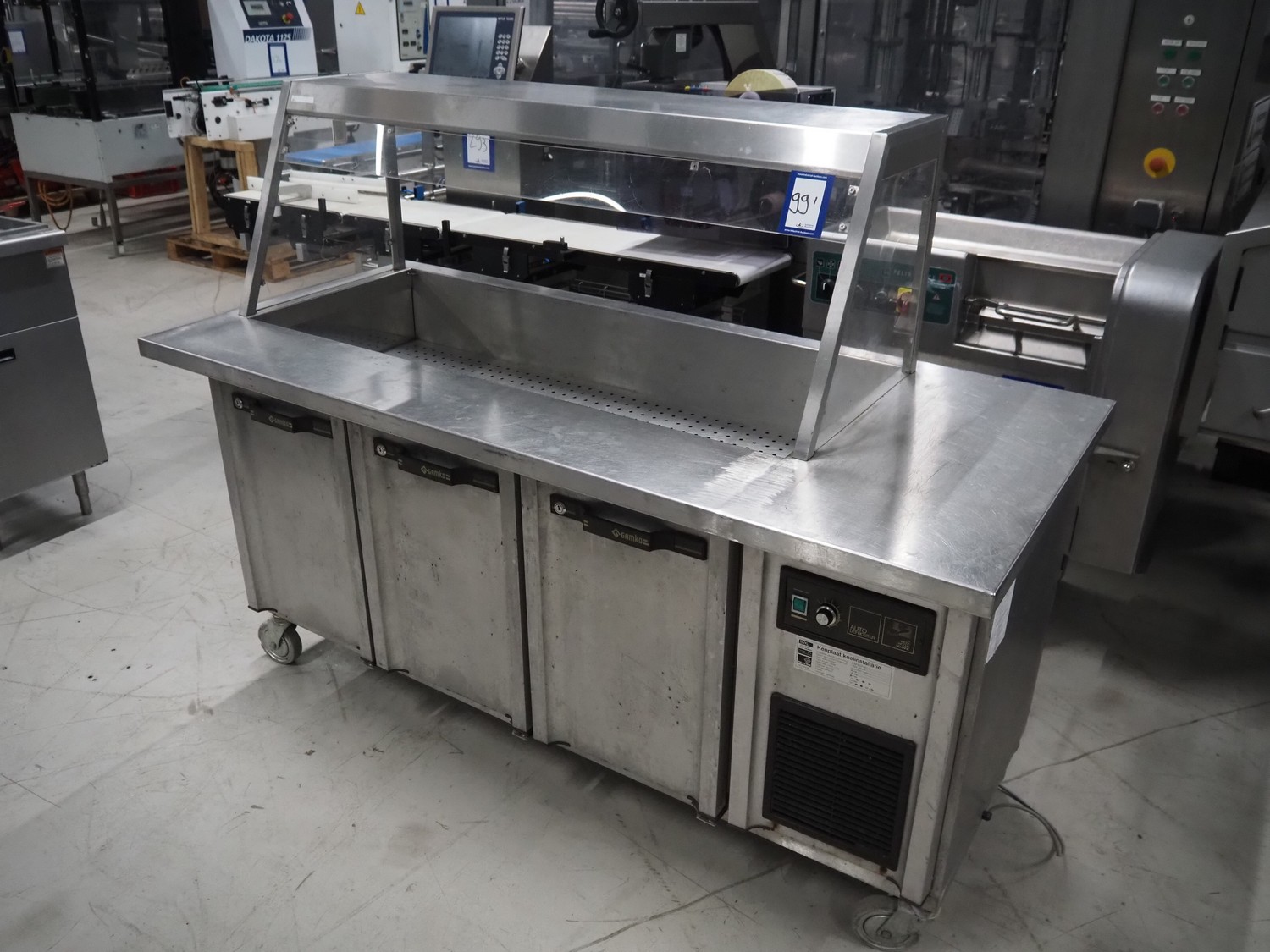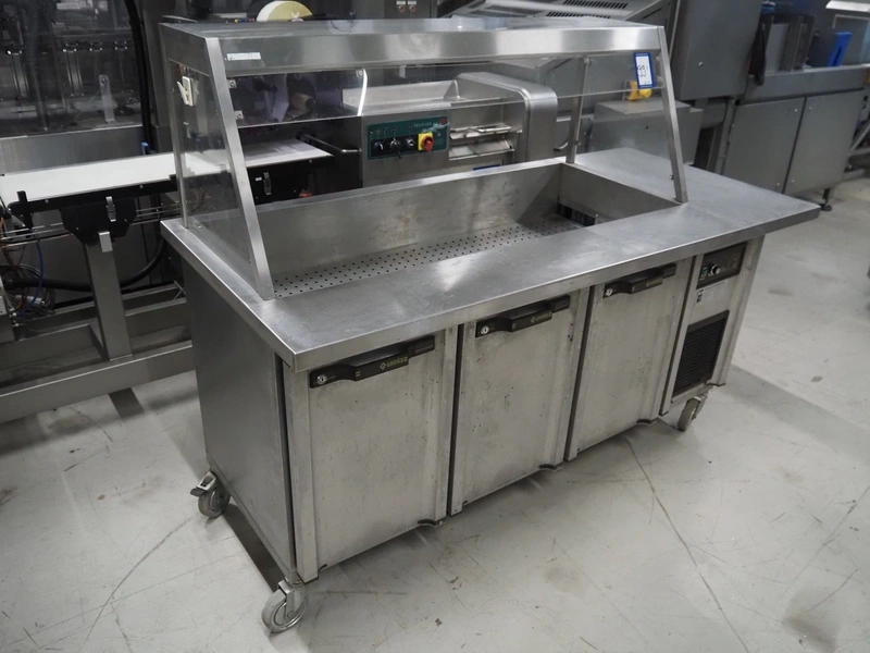 Gamko mobile refrigerated showcase, refrigerant: R12 / 0.29 kg, inside dimensions: 1280 mm x 500 mm x 180 mm, total dimensions: 1750 mm x 780 m mx 1400 mm.