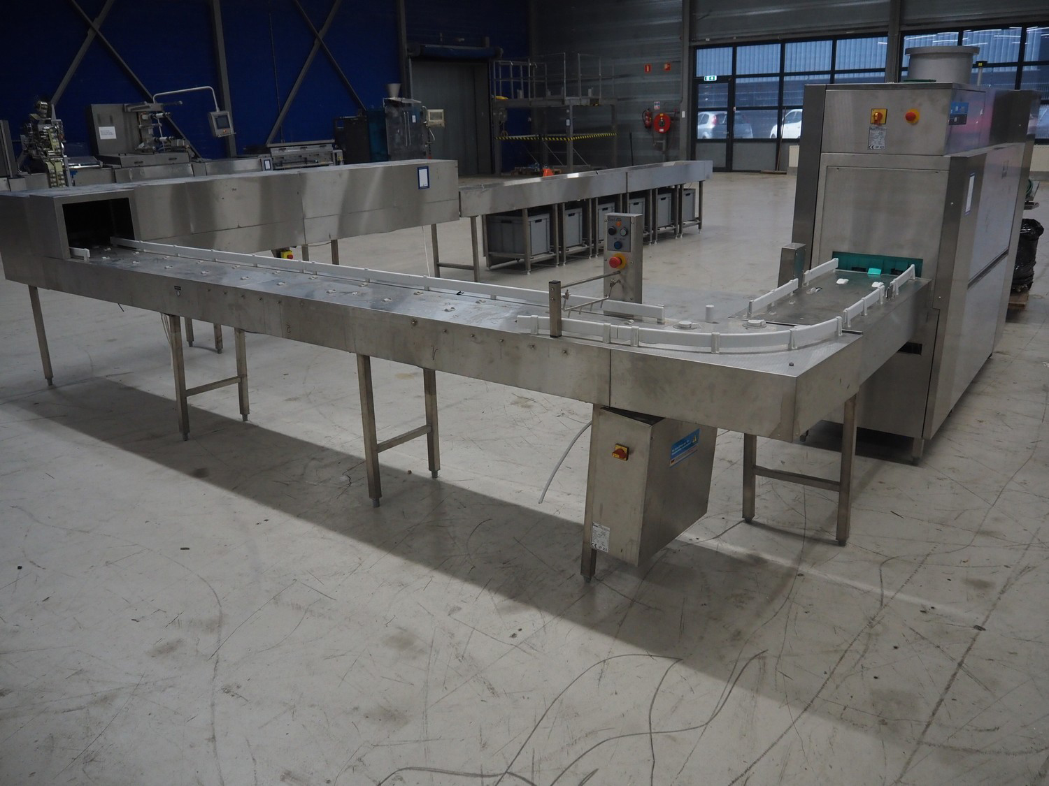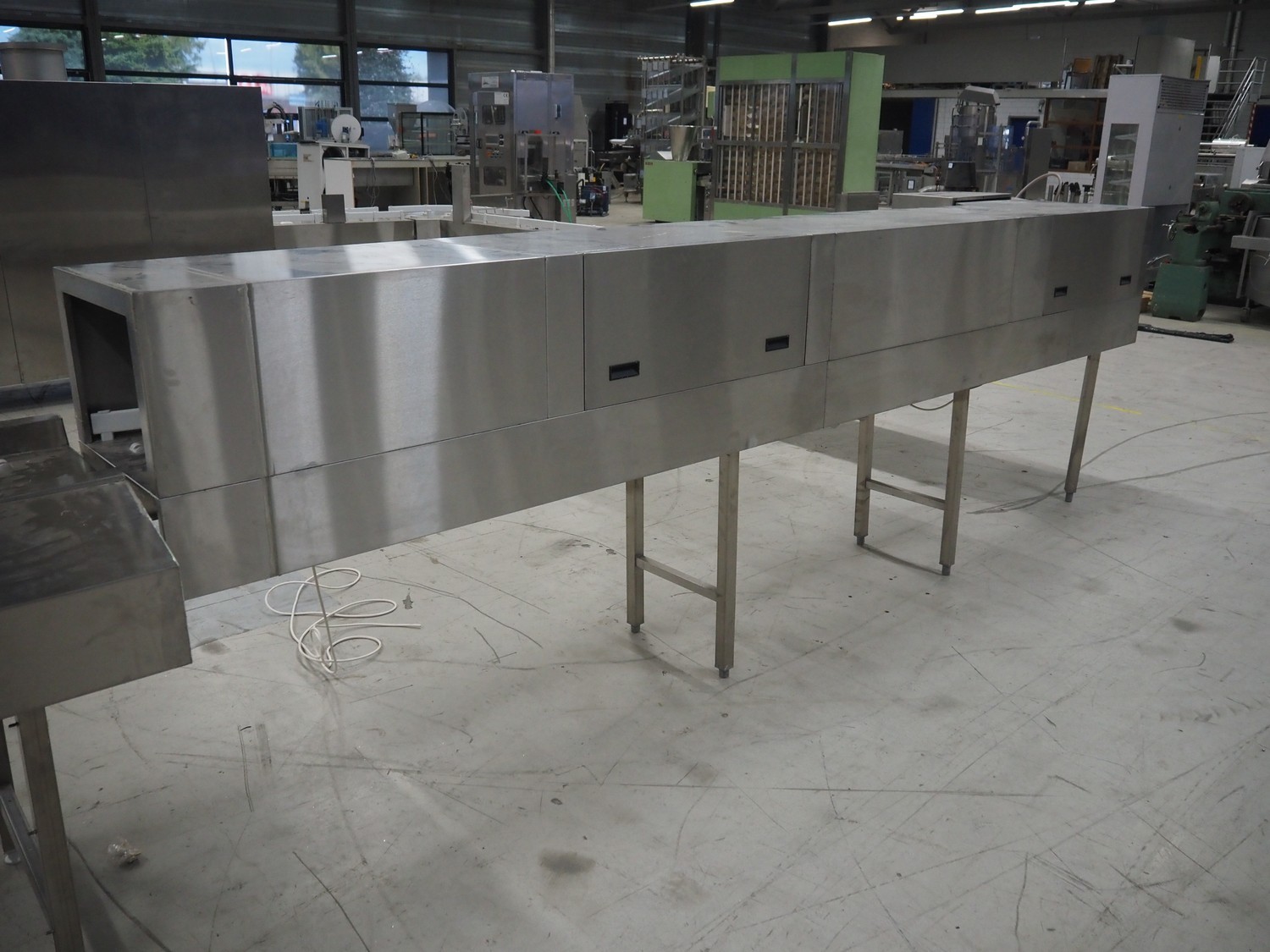 Meiko washing machine, type: BTA 160, serial number: 10381724, year of construction: 03/2018, 400 V, 3 Ph, 50 Hz, 51.22 A, 32.99 kW, clearance: 330 mm x 80 mm, dimensions: 8700 mm x 5200 mm x 1850 mm. Without pallet with parts.
