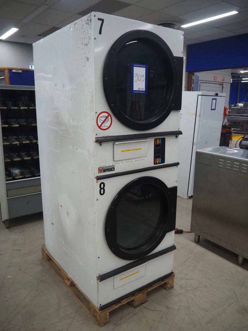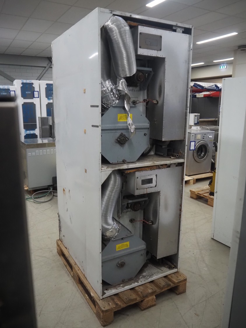 IPSO double stacked dryer, inside dimensions: (2x) Ø 705 mm x 770 mm, total dimensions: 760 mm x 1120 mm x 1990 mm.