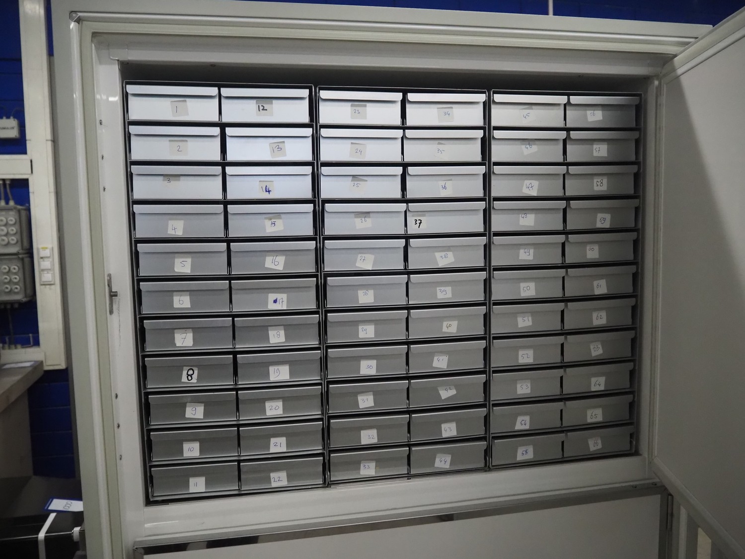 Panasonic mobile ultra low laboratory freezer, capacity: -80° C, dimensions: 1070 mm x 1000 mm x 2000 mm.