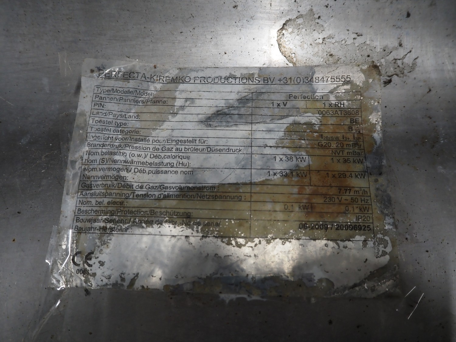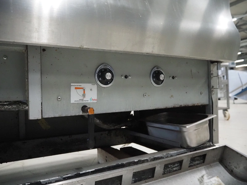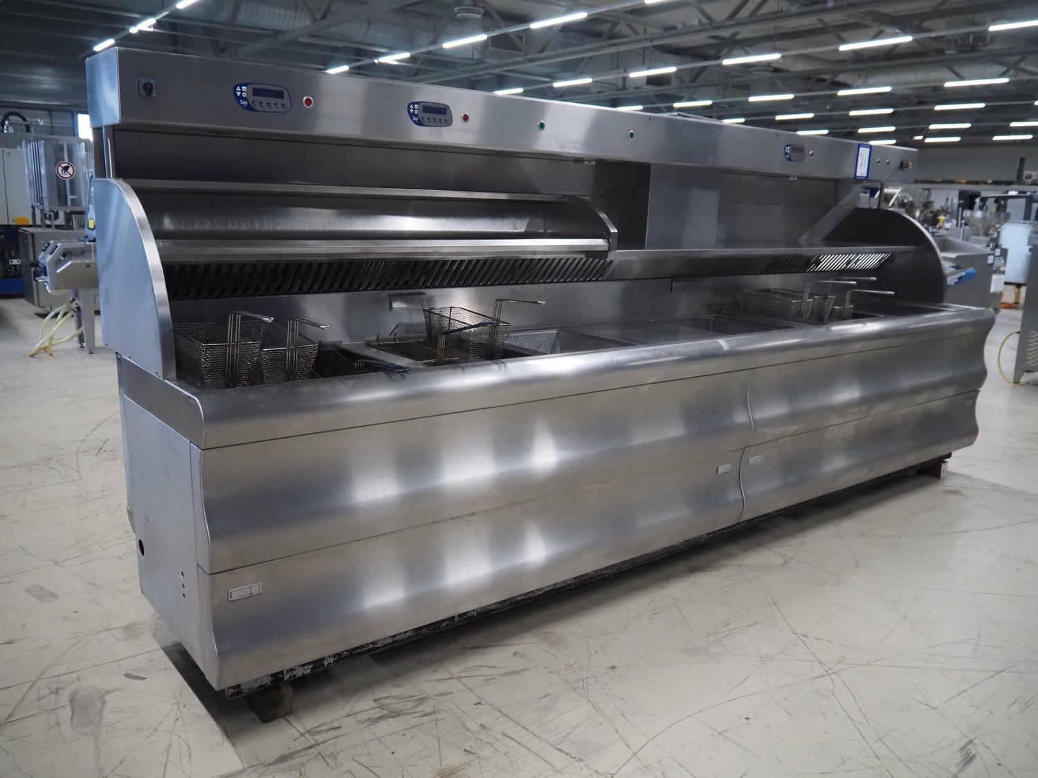 Kiremko fryer, type: Perfection, serial number: 20096925, year of construction: 06-2009, inside dimensions: 750 mm x 400 mm x 150 mm / 400 mm x 500 mm x 300 mm / 600 mm x 500 mm x 300 mm, total dimensions: 4450 mm x 950 mm x 1800 mm.