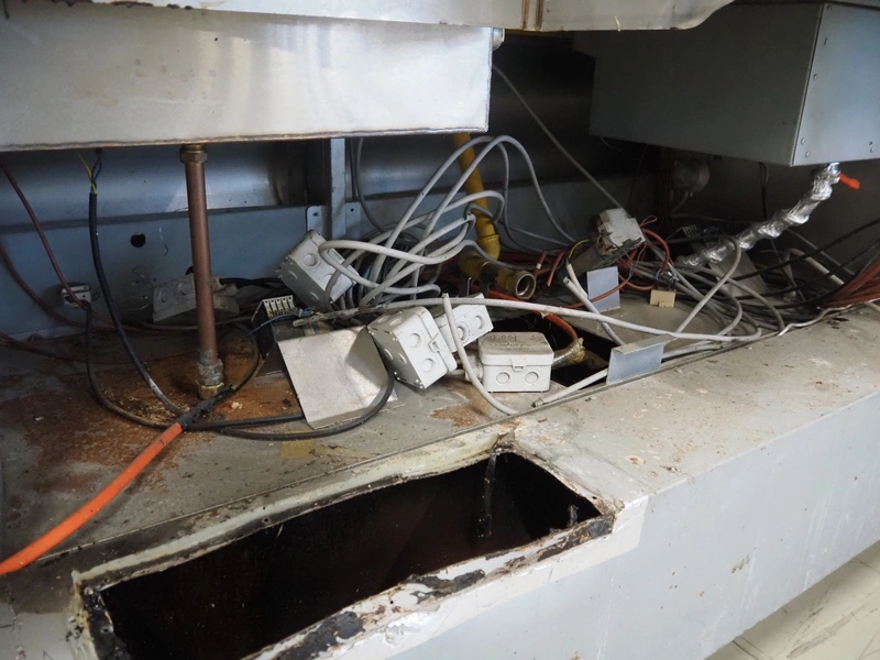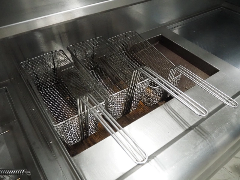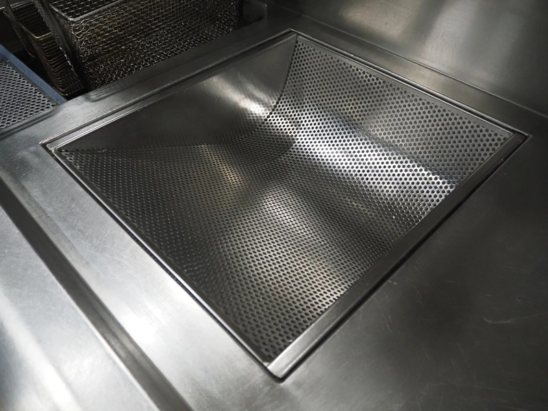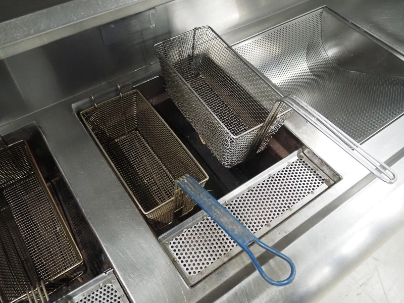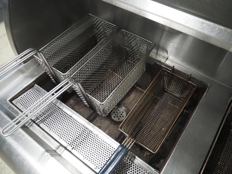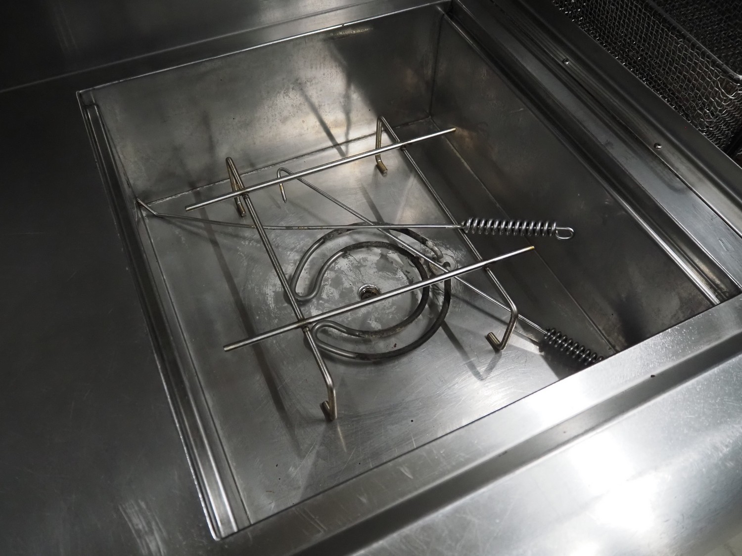 Kiremko fryer, type: Perfection, serial number: 20096925, year of construction: 06-2009, inside dimensions: 750 mm x 400 mm x 150 mm / 400 mm x 500 mm x 300 mm / 600 mm x 500 mm x 300 mm, total dimensions: 4450 mm x 950 mm x 1800 mm.