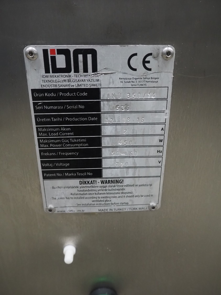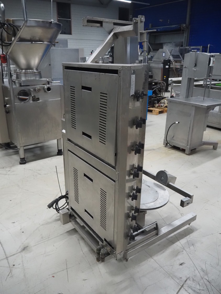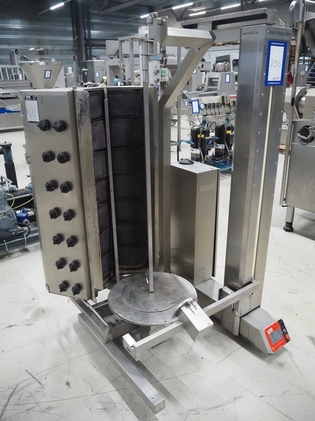 IDM kebab grill, model: IDM 2R07, serial number: 536, year of construction: 12/08/16, 220 V, 50/60 Hz, 2 A, 450 W, clearance: Ø 500 mm x 1100 mm, total dimensions: 1150 mm x 1100 mm x 1800 mm.