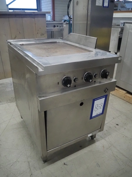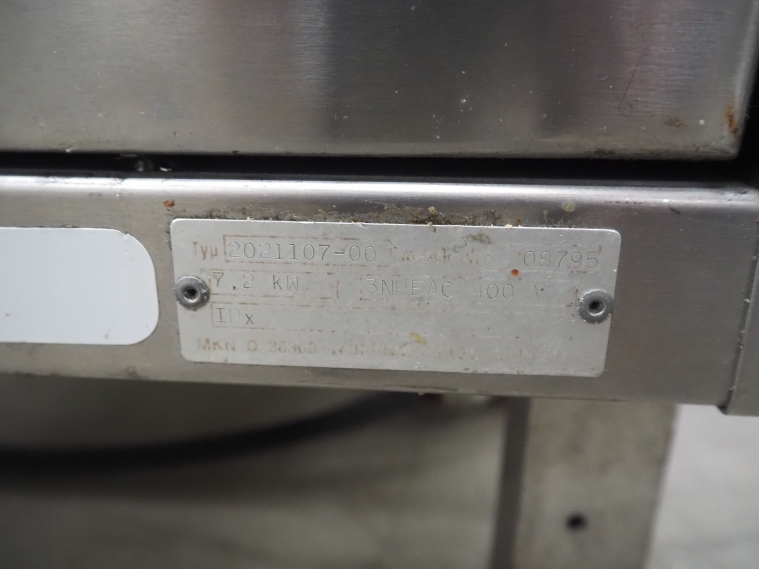 MKN grill plate, type: 2021107-00, machine number: 08795, 400 V, 3 Ph, 7.2 kW, dimensions: 850 mm x 600 mm x 850 mm.