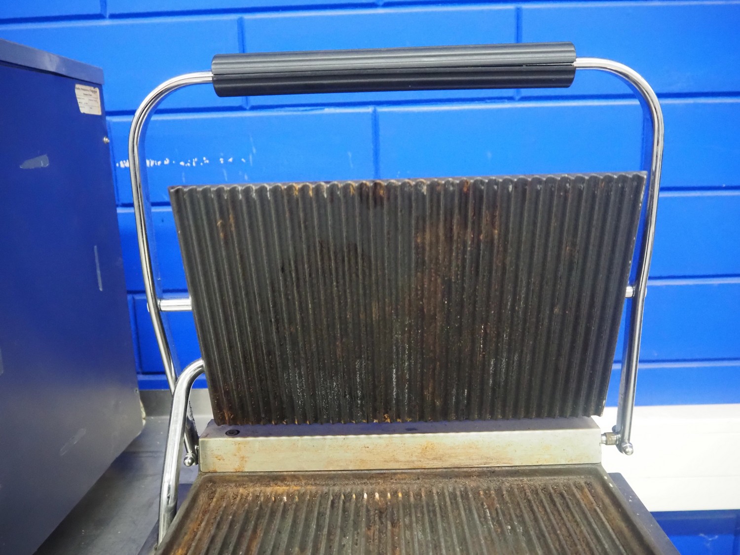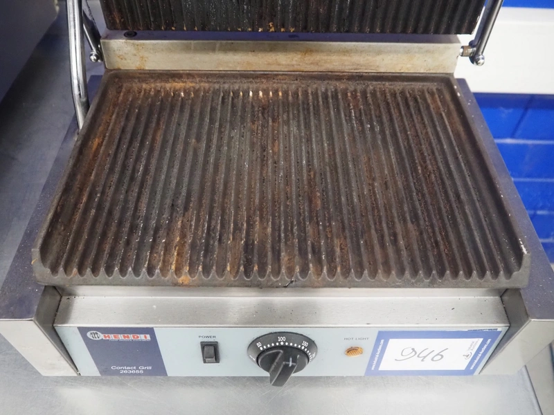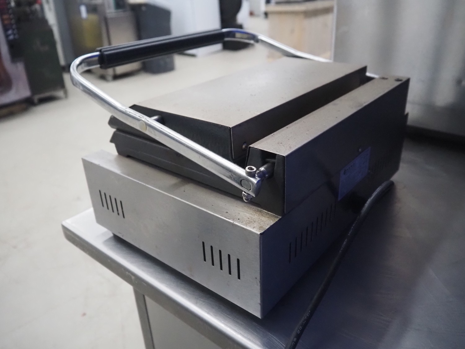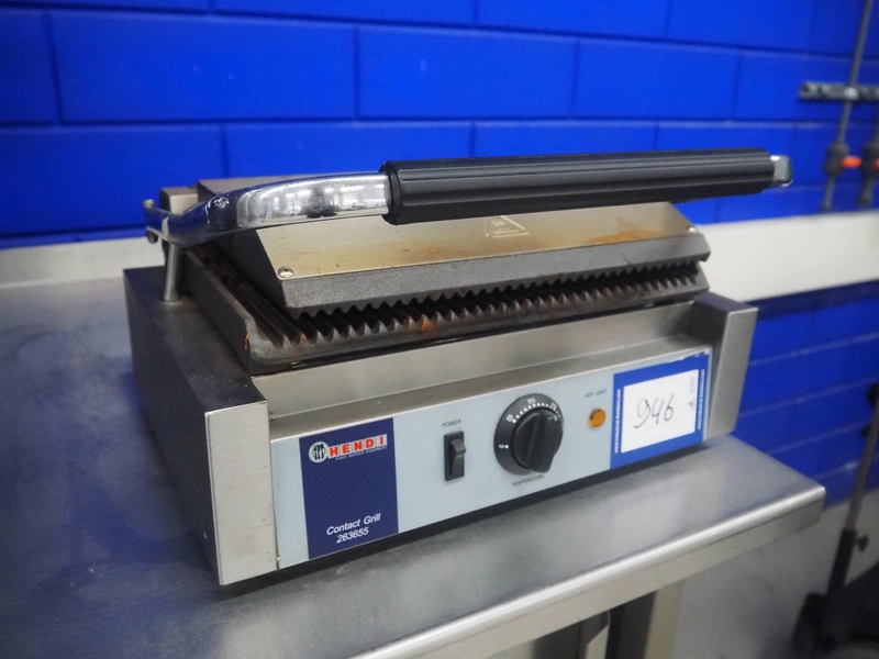 Hendi single panini grill, serial number: 501437-000025, 230 V, 50 Hz, 2200 W, dimensions: 370 mm x 430 mm x 230 mm.