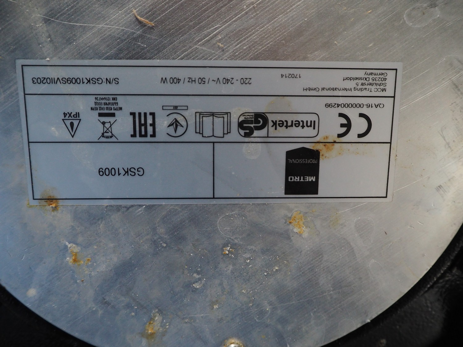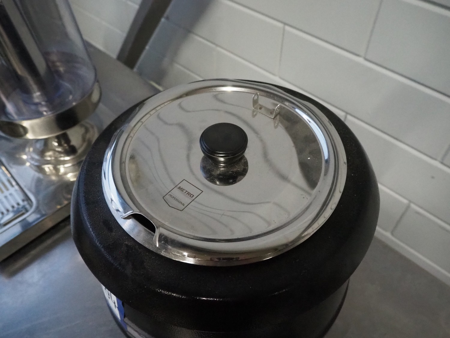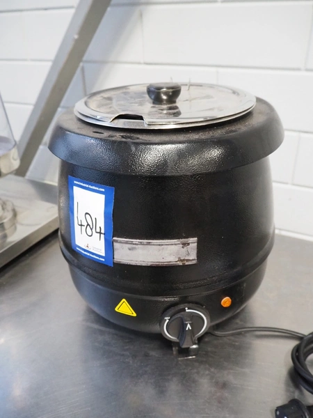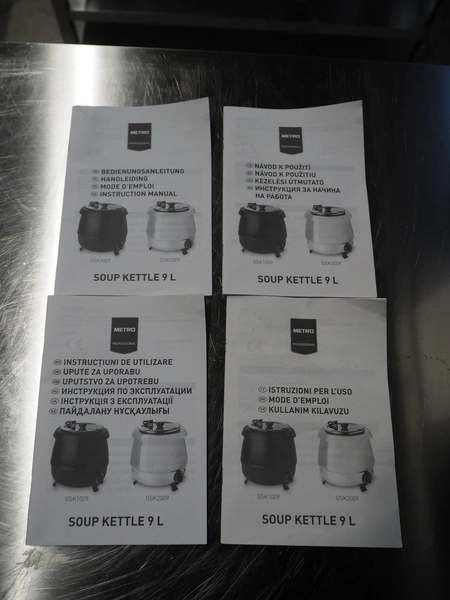 MCC Trading International GmbH soup kettle, model: GSK1009, serial number: GSK1009SVII0203, 220-240 V, 50 Hz, 400 W, volume: 9 liter, inside dimensions: Ø 215 mm x 250 mm, total dimensions: 340 mm x 340 mm x 350 mm.