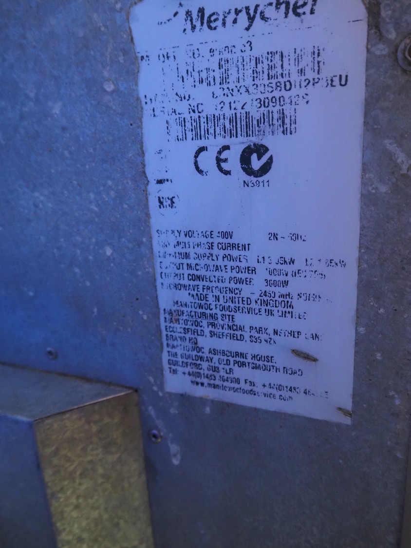 Merrychef turbo oven, model: Eikon e3, 400 V, 2 Ph, 50 Hz, inside dimensions: 350 mm x 320 mm x 320 mm, total dimensions: 600 mm x 550 mm x 500 mm.