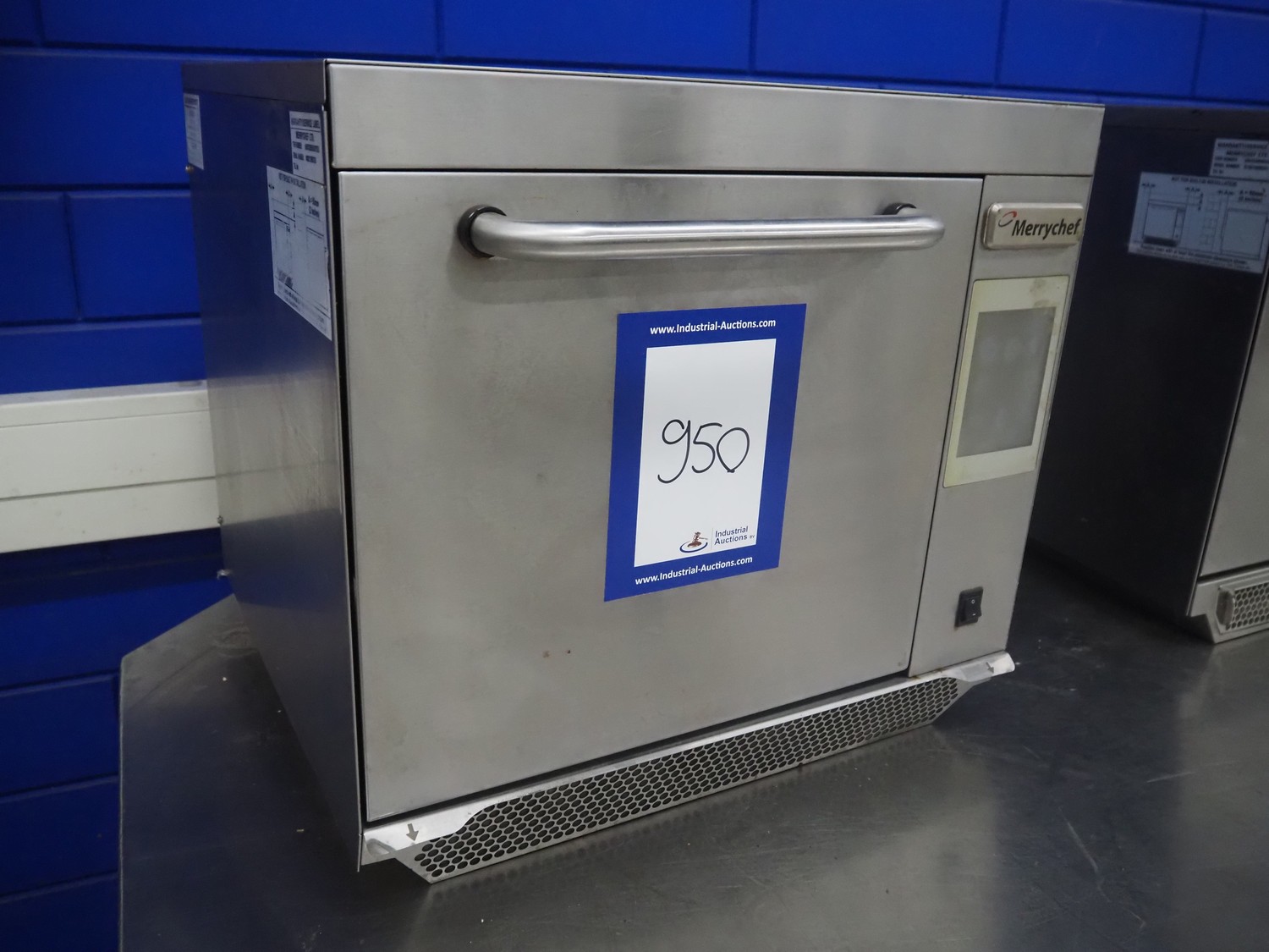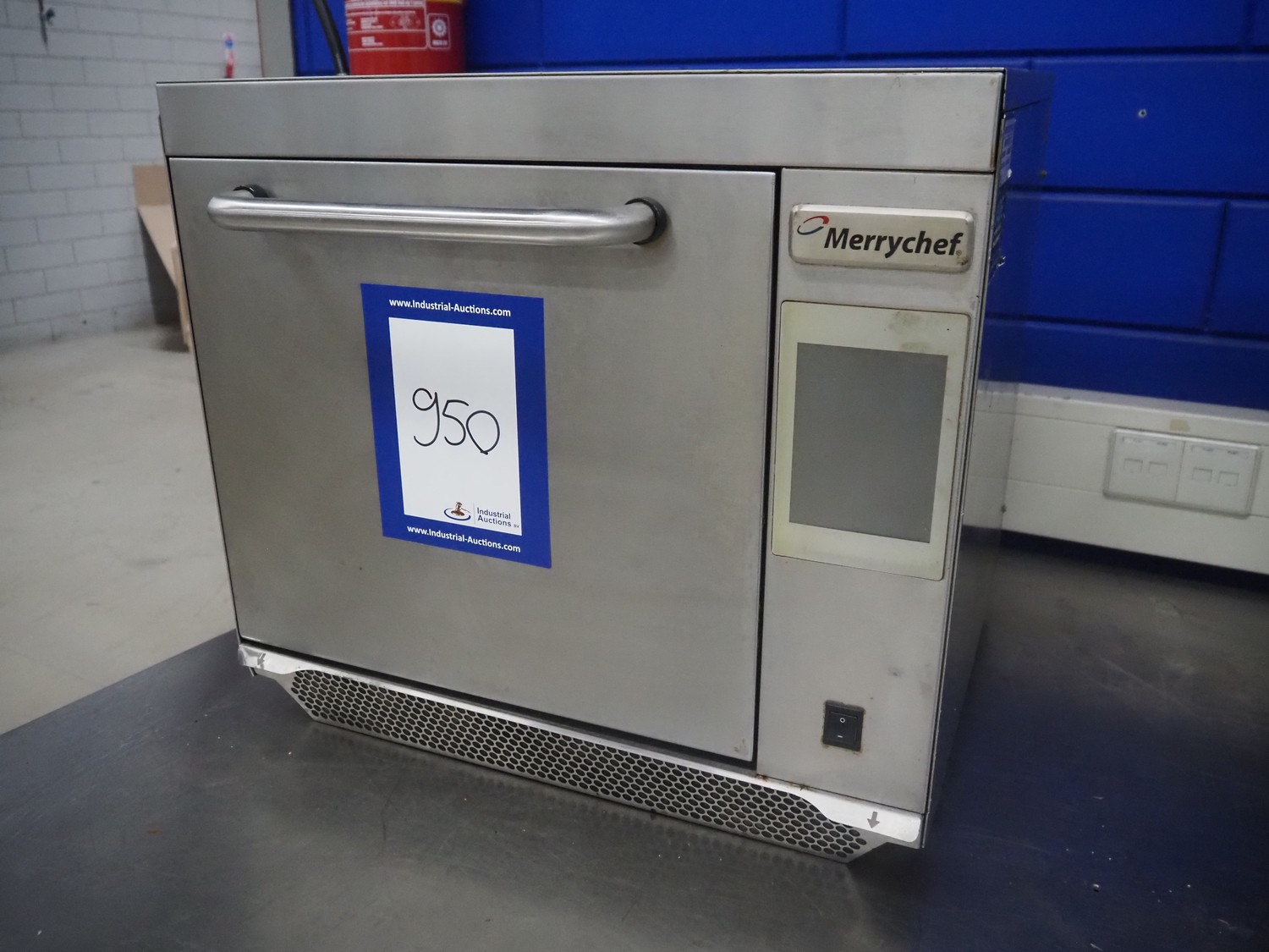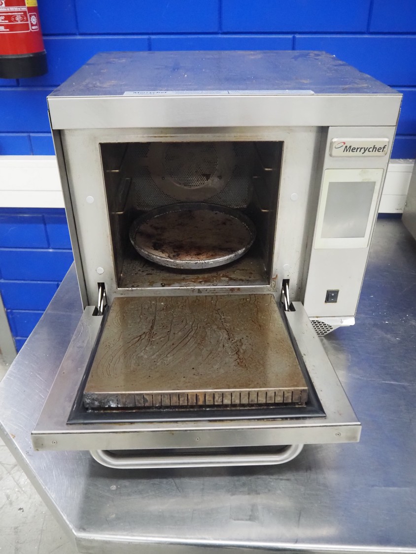 Merrychef turbo oven, model: Eikon e3, serial number: 1409213090752, 400 V, 2 Ph, 50 Hz, inside dimensions: 350 mm x 320 mm x 320 mm, total dimensions: 600 mm x 550 mm x 500 mm.
