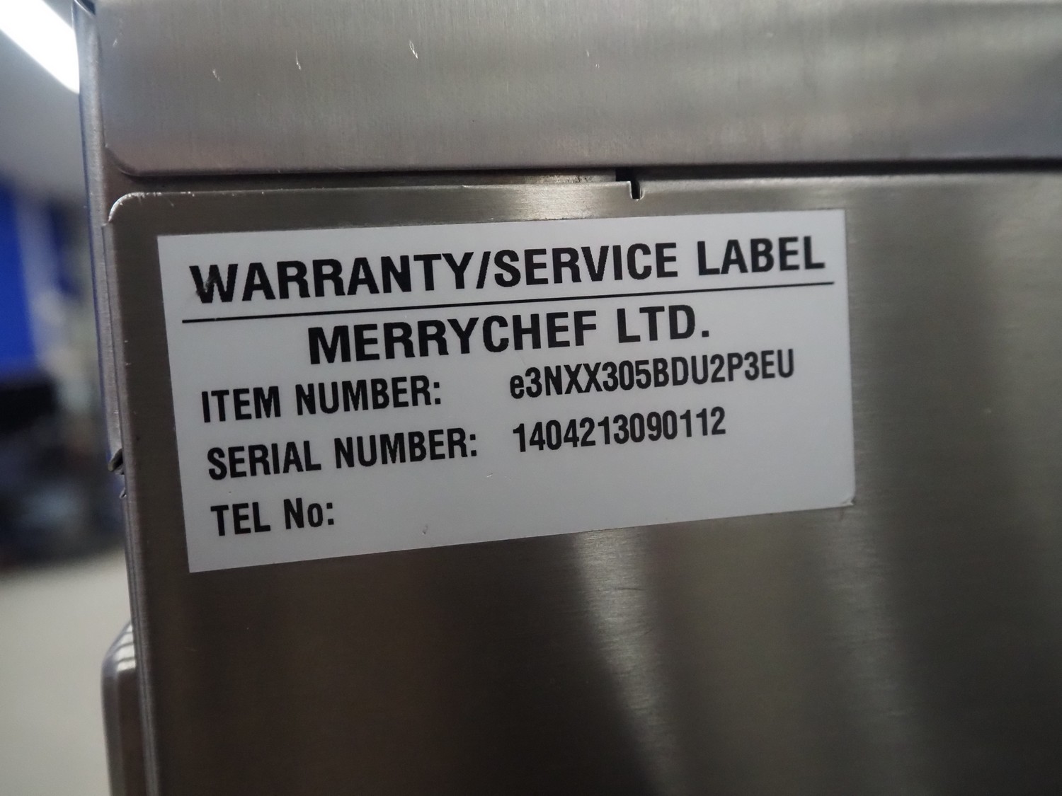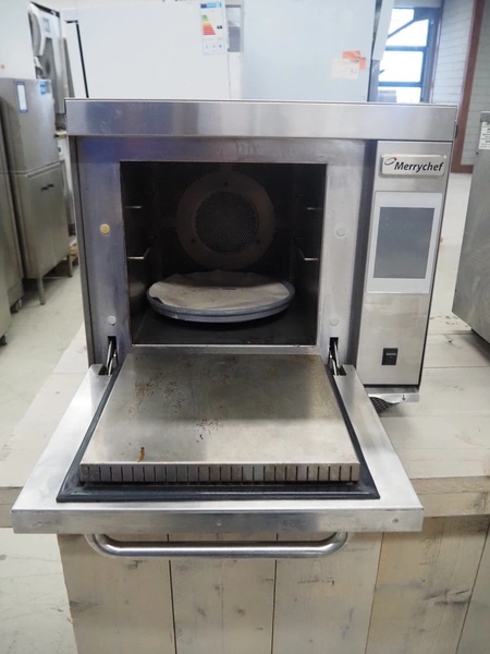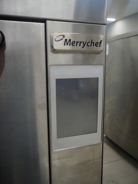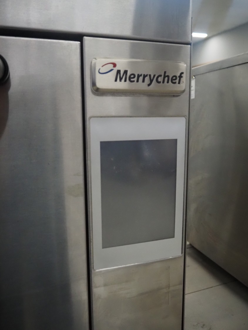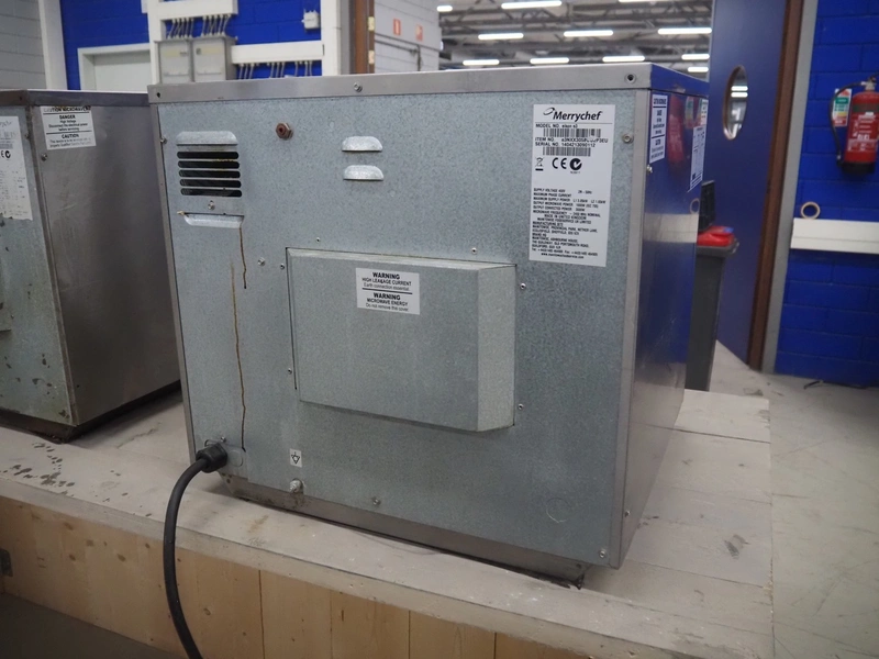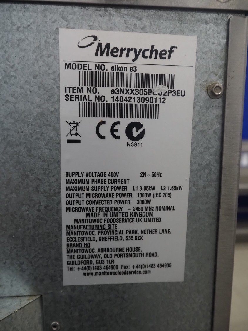 Merrychef turbo oven, model: Eikon e3, serial number: 1404213090112, 400 V, 2 Ph, 50 Hz, inside dimensions: 350 mm x 320 mm x 320 mm, total dimensions: 600 mm x 550 mm x 500 mm.