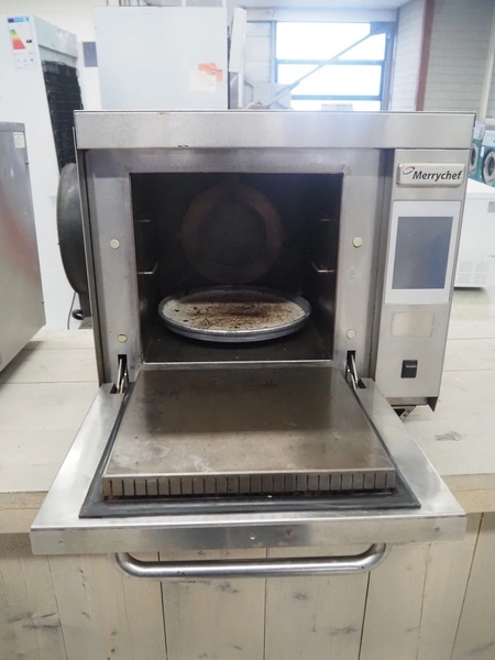 Merrychef turbo oven, model: Eikon e3, serial number: 1404213090113, 400 V, 2 Ph, 50 Hz, inside dimensions: 350 mm x 320 mm x 320 mm, total dimensions: 600 mm x 550 mm x 500 mm.