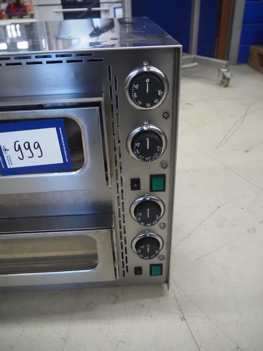 GFS GmbH double deck oven, model: DD 101 BS+, serial number: 18121092, 230 V, 50-60 Hz, 3.4 kW, dimensions decks: (2x) 410 mm x 350 mm x 80 mm, total dimensions: 570 mm x 470 mm x 470 mm.