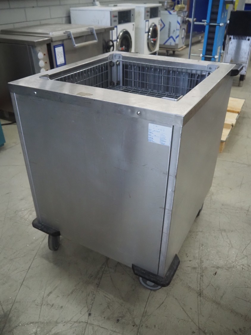 Hupfer mobile plate dispenser, tray dimensions: 560 mm x 560 mm x 140 mm, total dimensions: 880 mm x 750 mm x 920 mm.