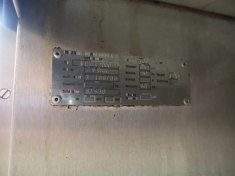 Imperial-Werke GmbH & Co. 2 pits stove, type: VEHT2000, number: 26044, 400 V, 3 Ph, 50 Hz, 6.5 kW, stove dimensions: (2x) 300 mm x 300 mm, total dimensions: 900 mm x 560 mm x 900 mm.
