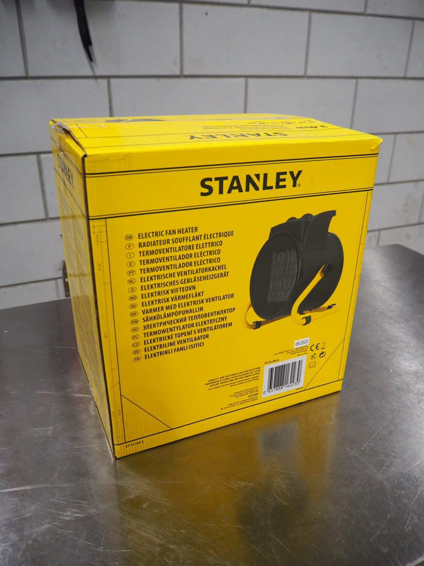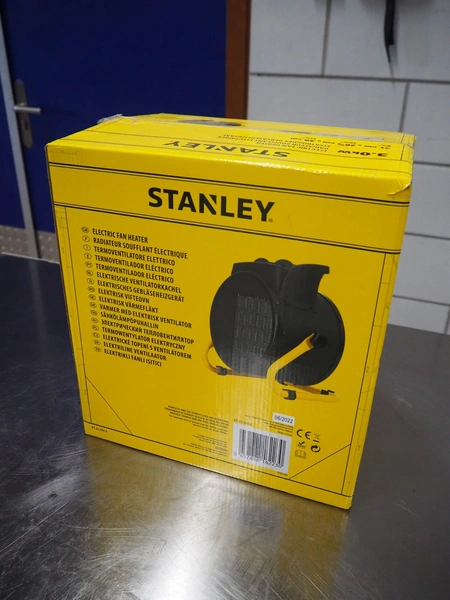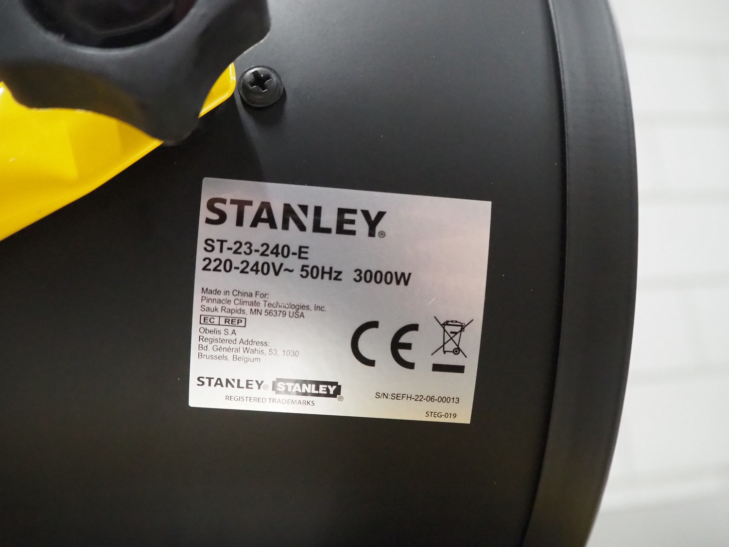 Stanley electric fan heater, model: ST-23-240-E, serial number: SEFH-22-06-00013, 220-240 V, 50 Hz, 3000 W, dimensions: 220 mm x 290 mm x 320 mm.