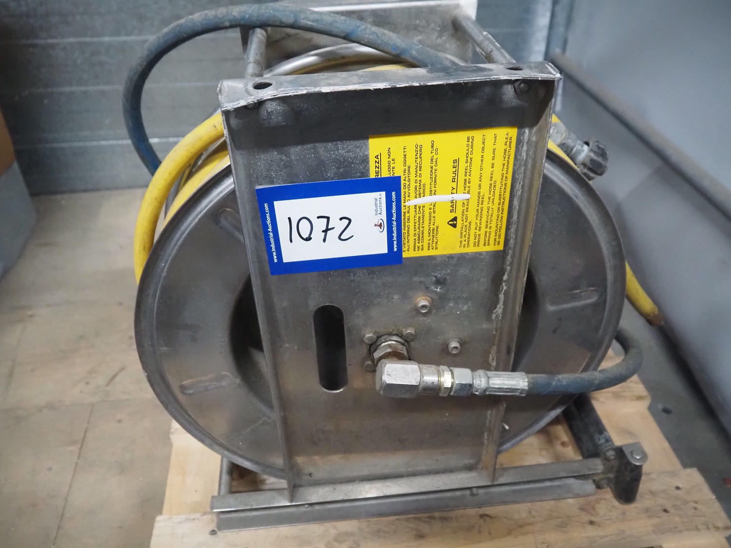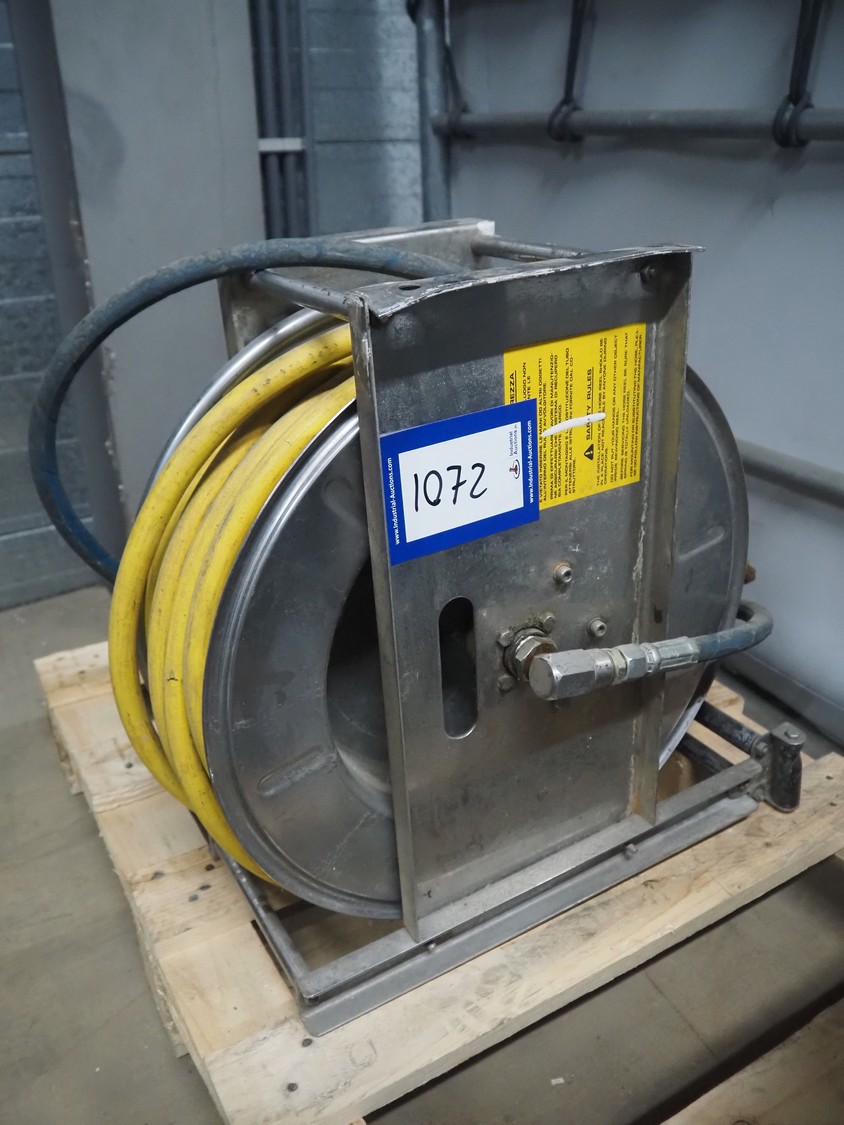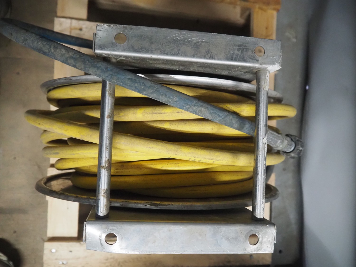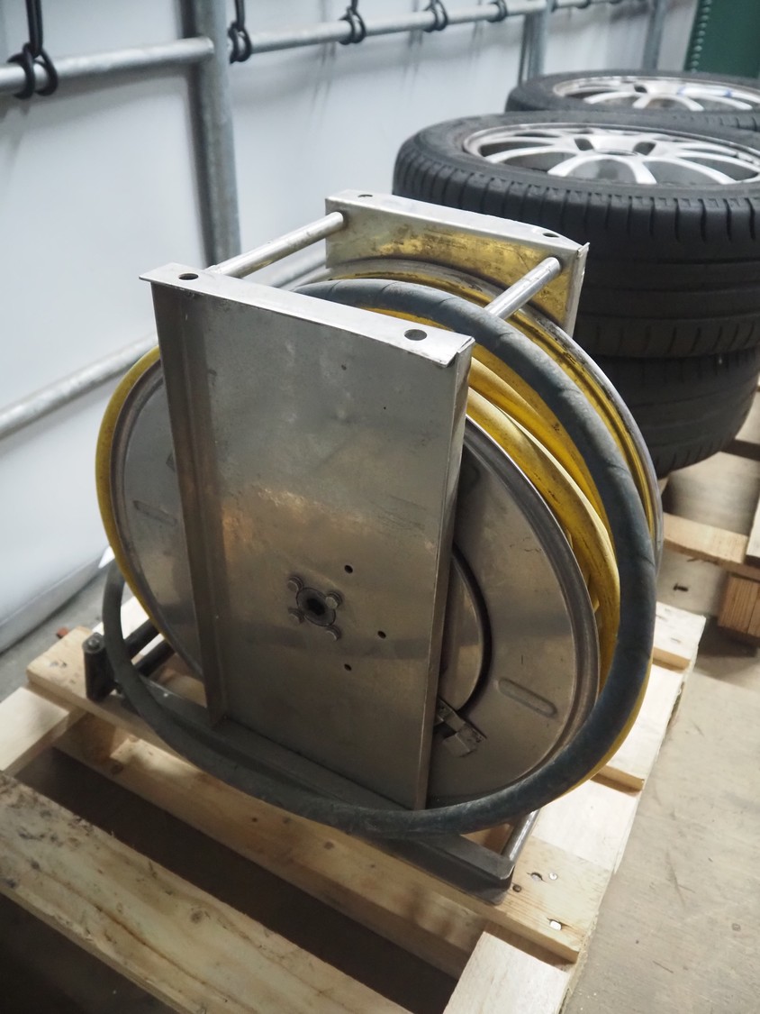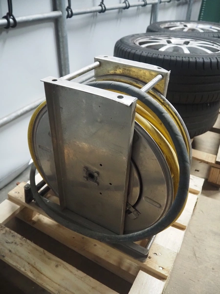 Hose reel with hose, dimension: 450 mm x 250 mm x 470 mm.