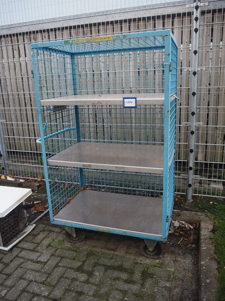 Steel trolley, 3 floors, floor dimensions: 1020 mm x 670 mm, total dimensions: 1150 mm x 700 mm x 1770 mm.
