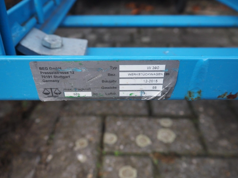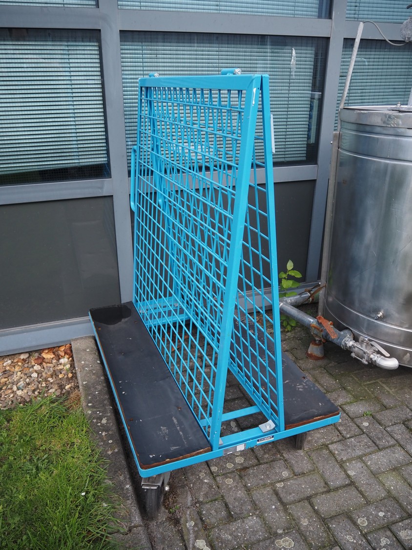 Steel trolley, maximum capacity: 500 kg, total dimensions: 1250 mm x 800 mm x 1500 mm.