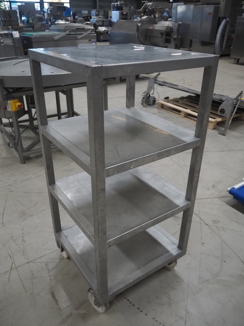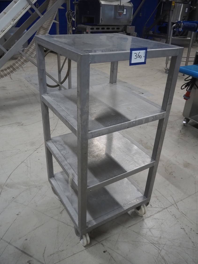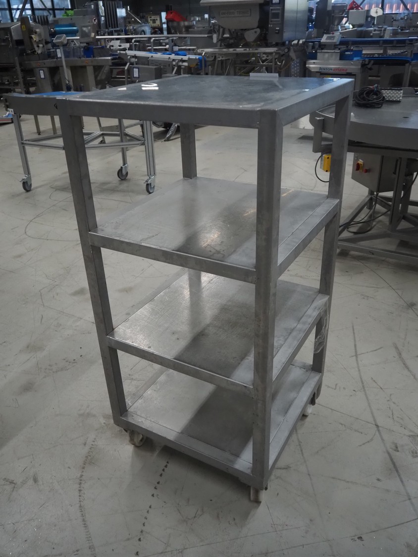 S/s trolley, 4 floors, dimensions: 600 mm x 600 mm x 1290 mm.