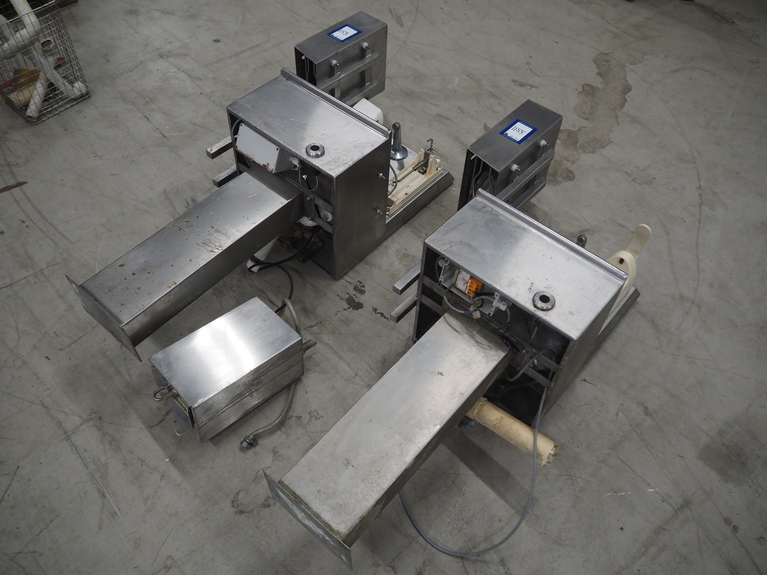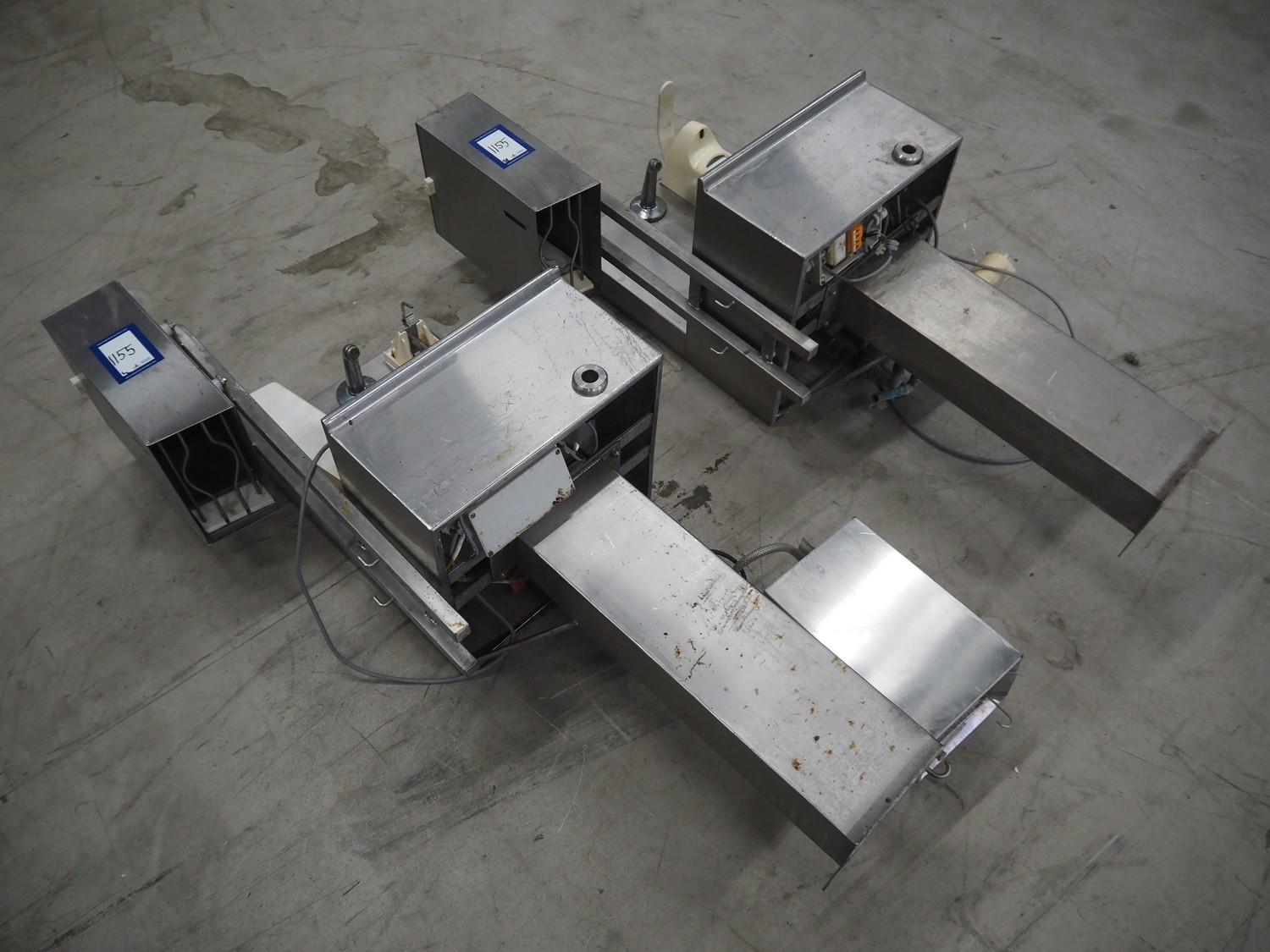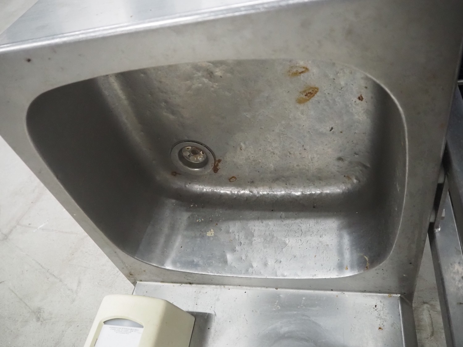 2 Itec s/s sinks, sensor operated, with soap dispenser, paper dispenser and 1 knife sterilizer, dimensions: (2x) 600 mm x 470 mm x 1380 mm.