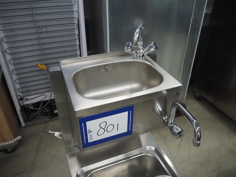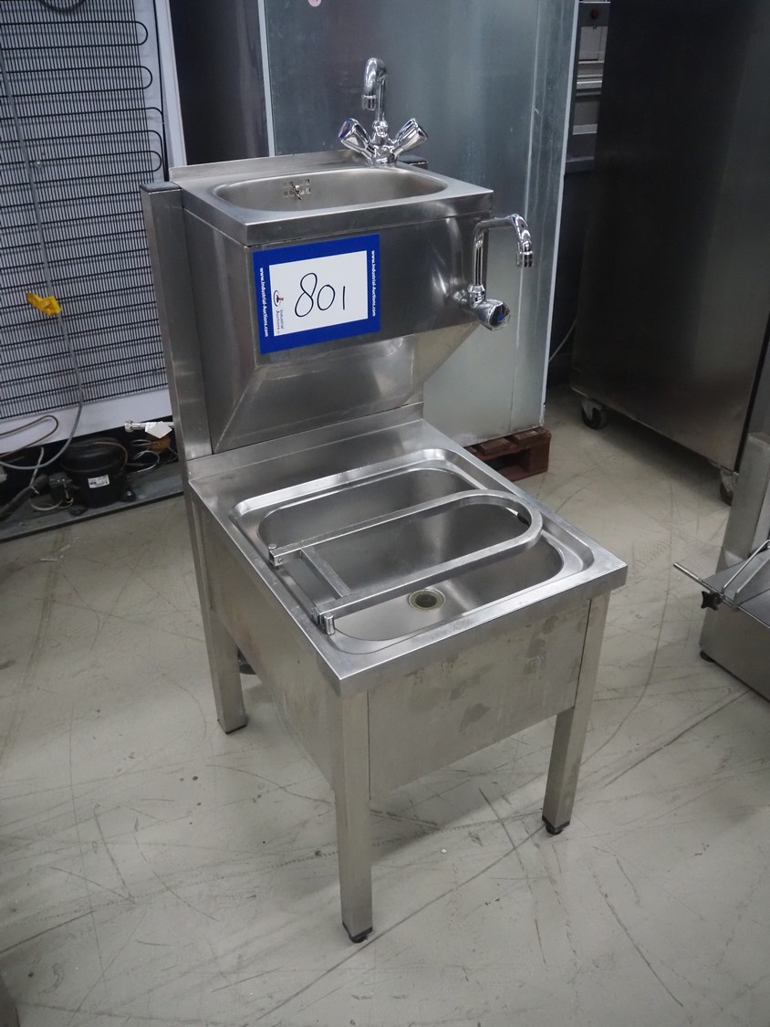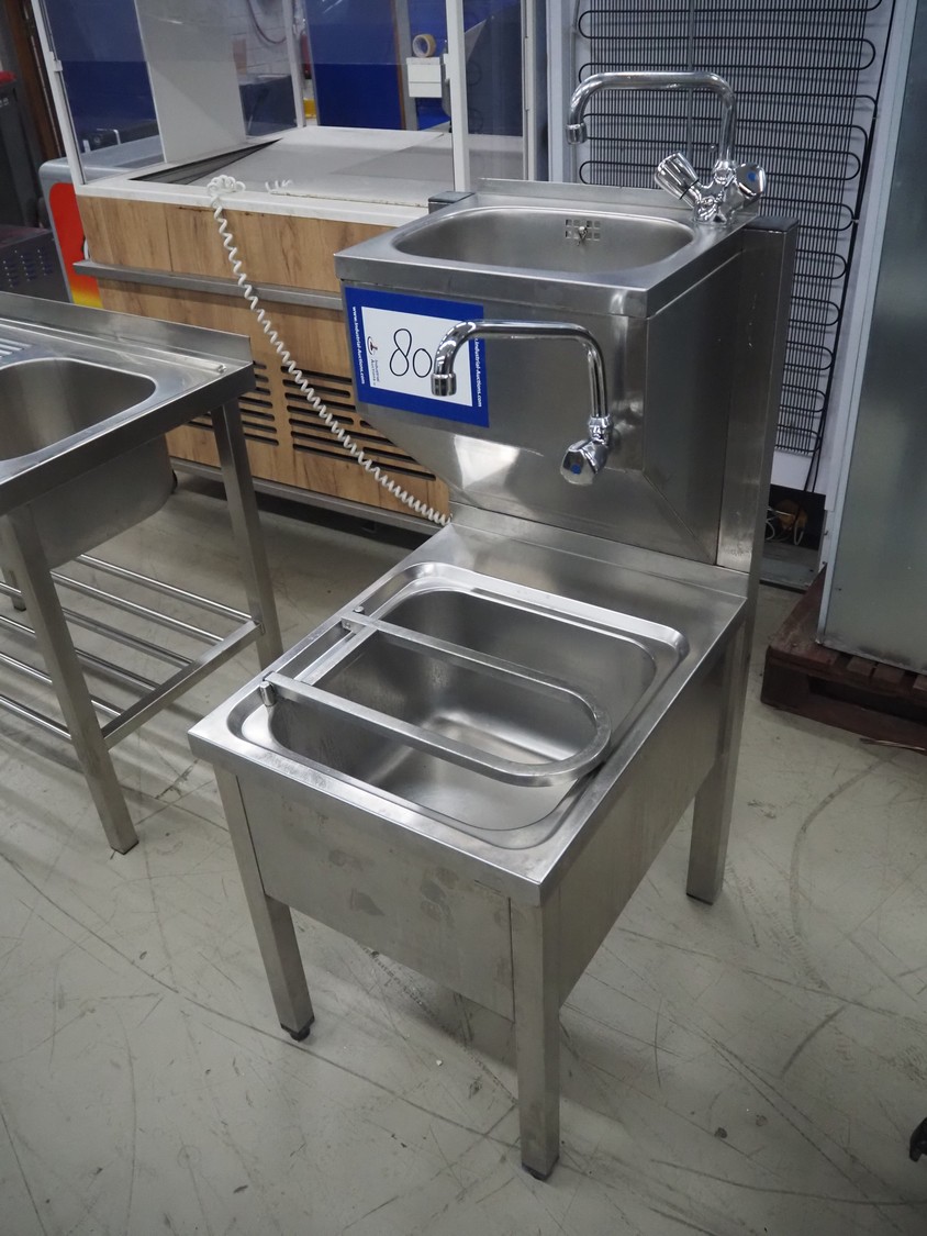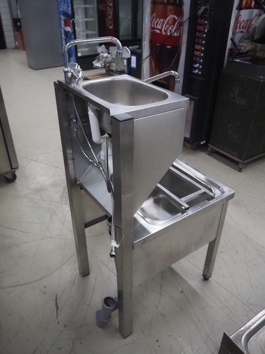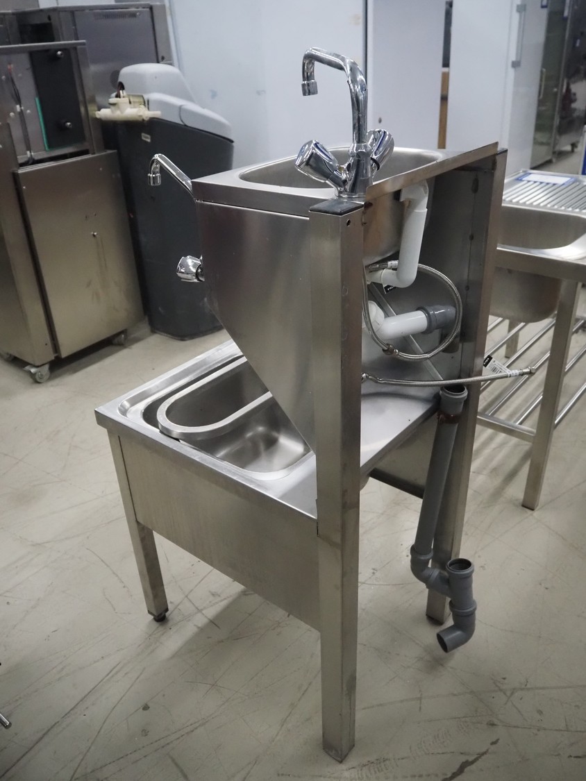 Double s/s sink with faucets, dimensions: 650 mm x 500 mm x 1350 mm.