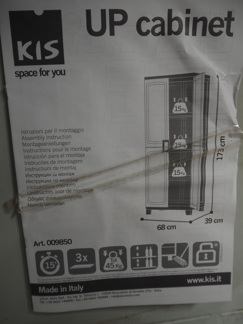 Kis cabinet, model: Up, dimensions: 680 mm x 390 mm x 1730 mm, dimensions box: 800 mm x 400 mm x 200 mm.